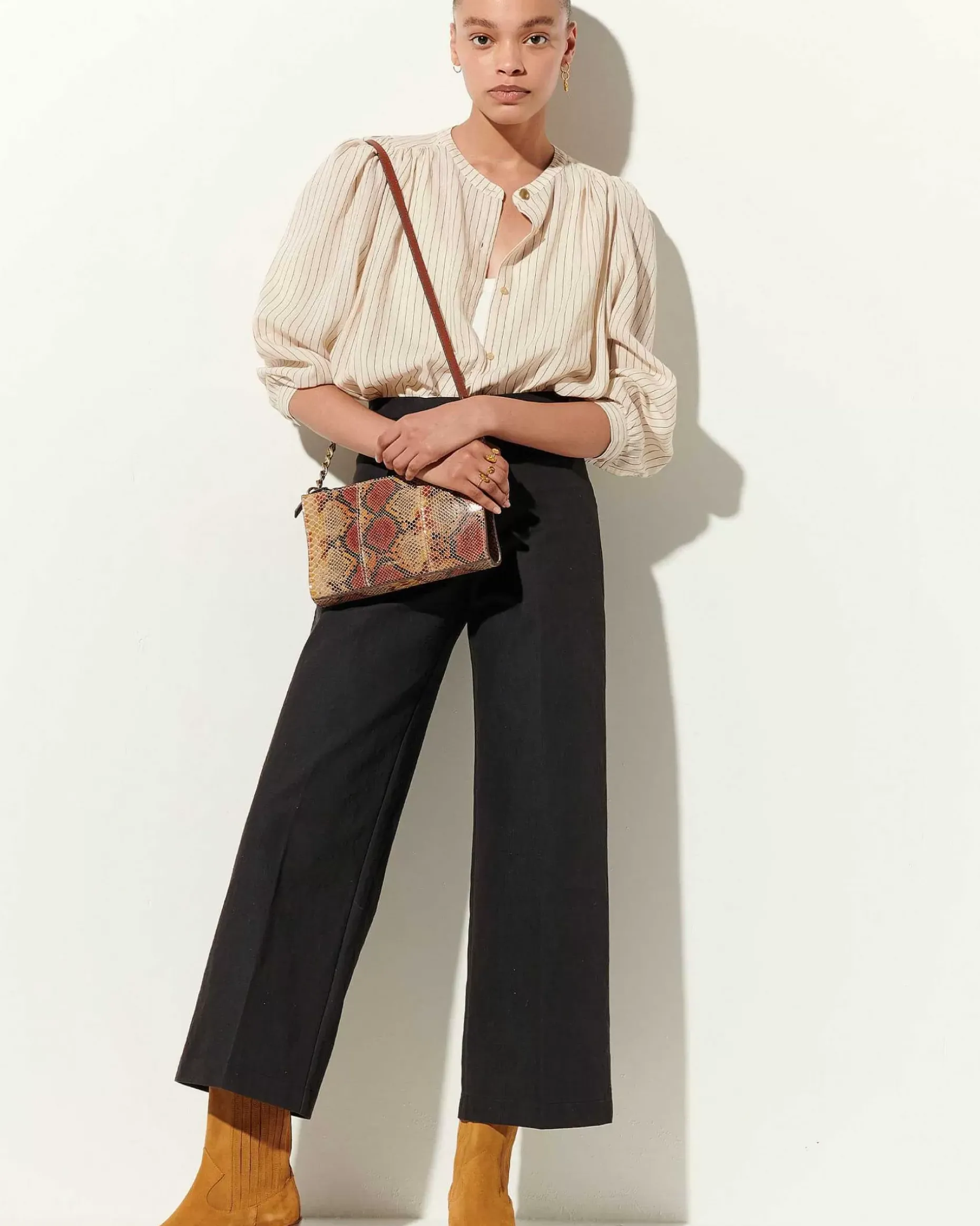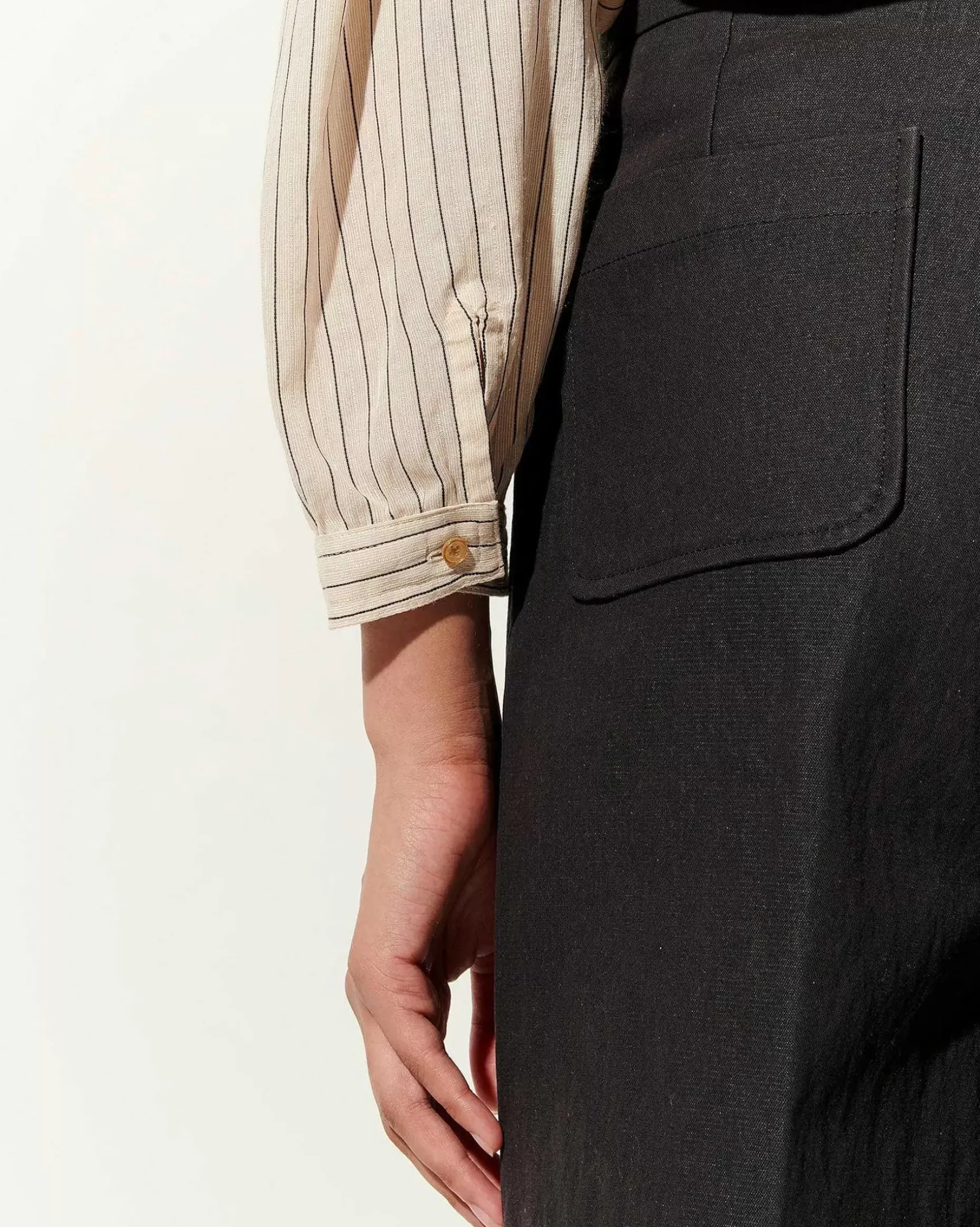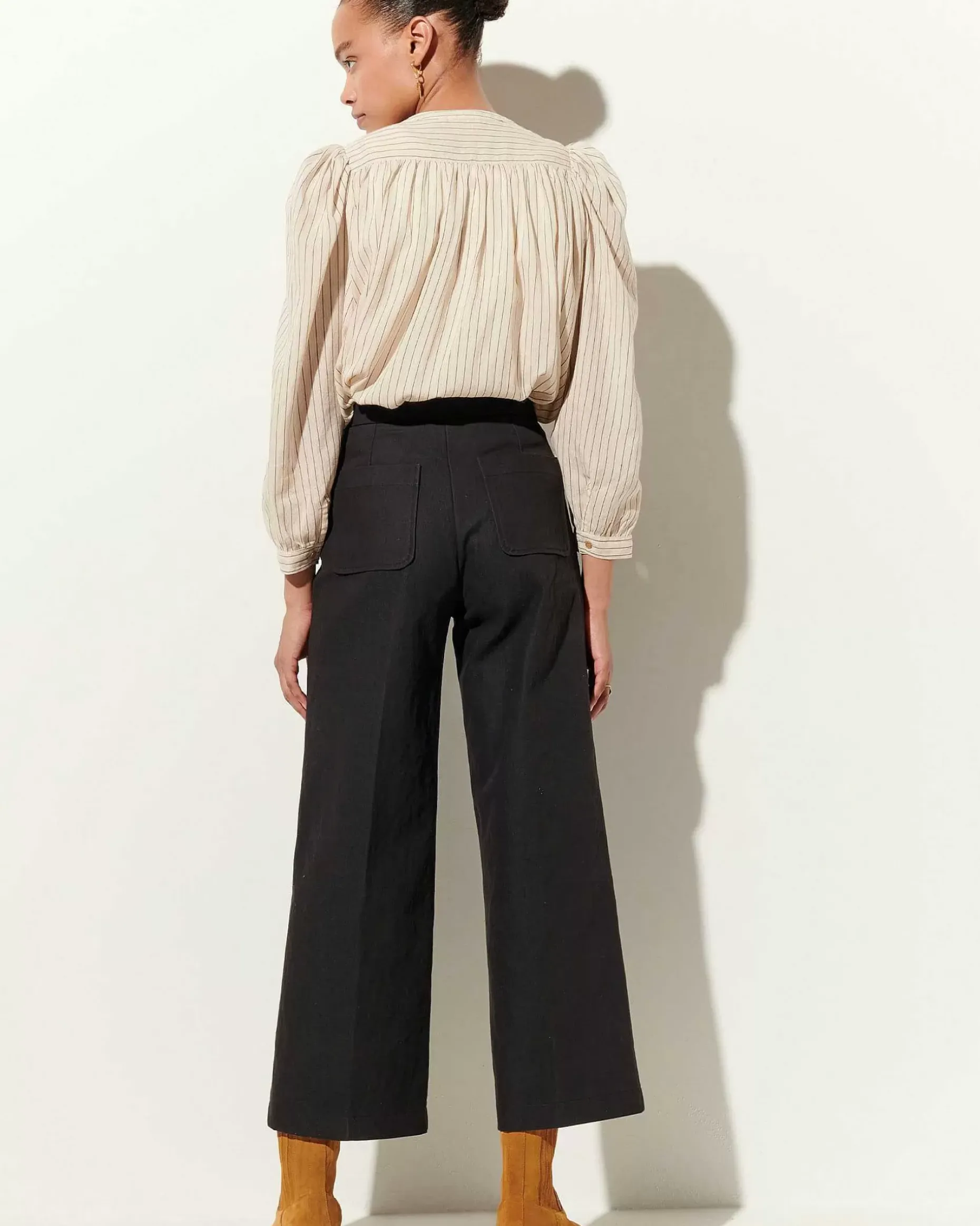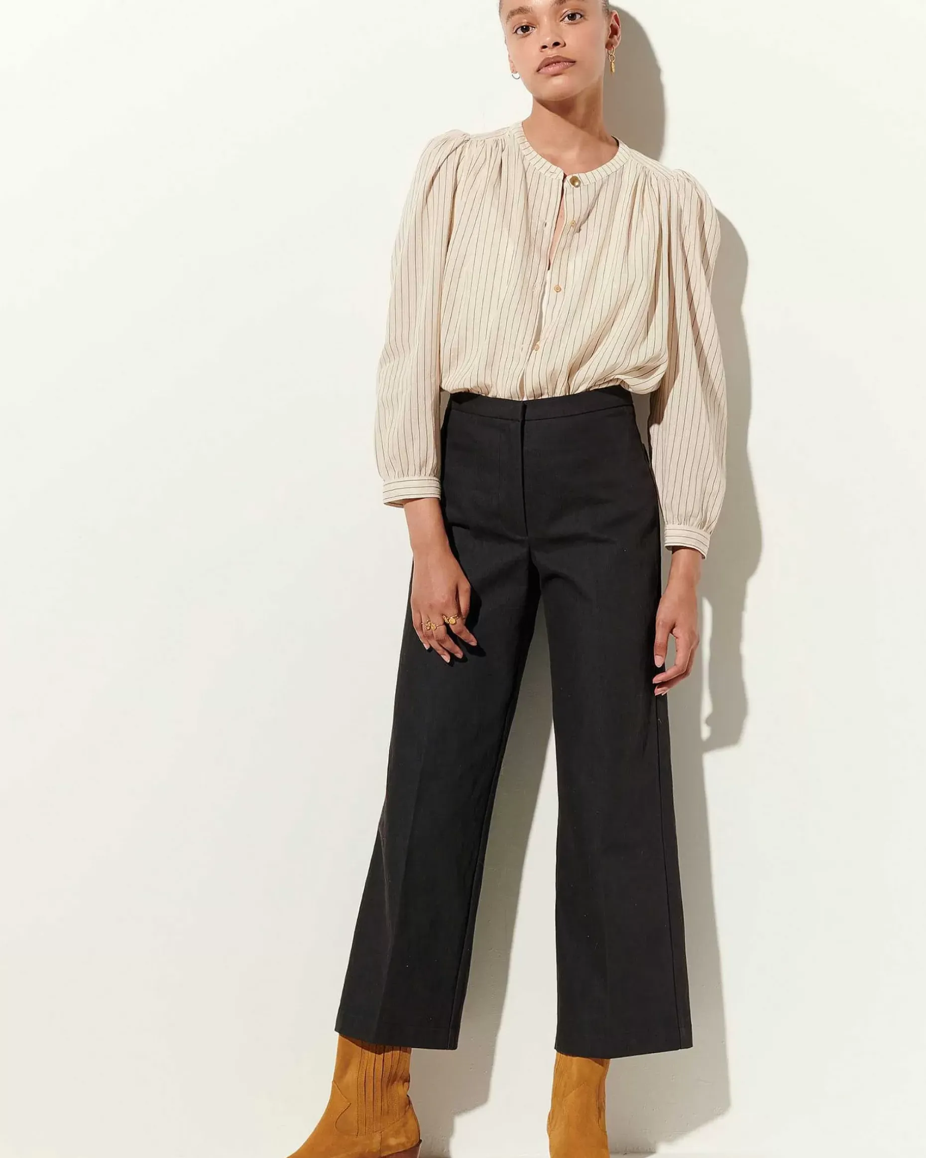 Gerade Geschnittene Bügelfaltenhose Aus Angerautem Gabardine In Fantasiebindung.