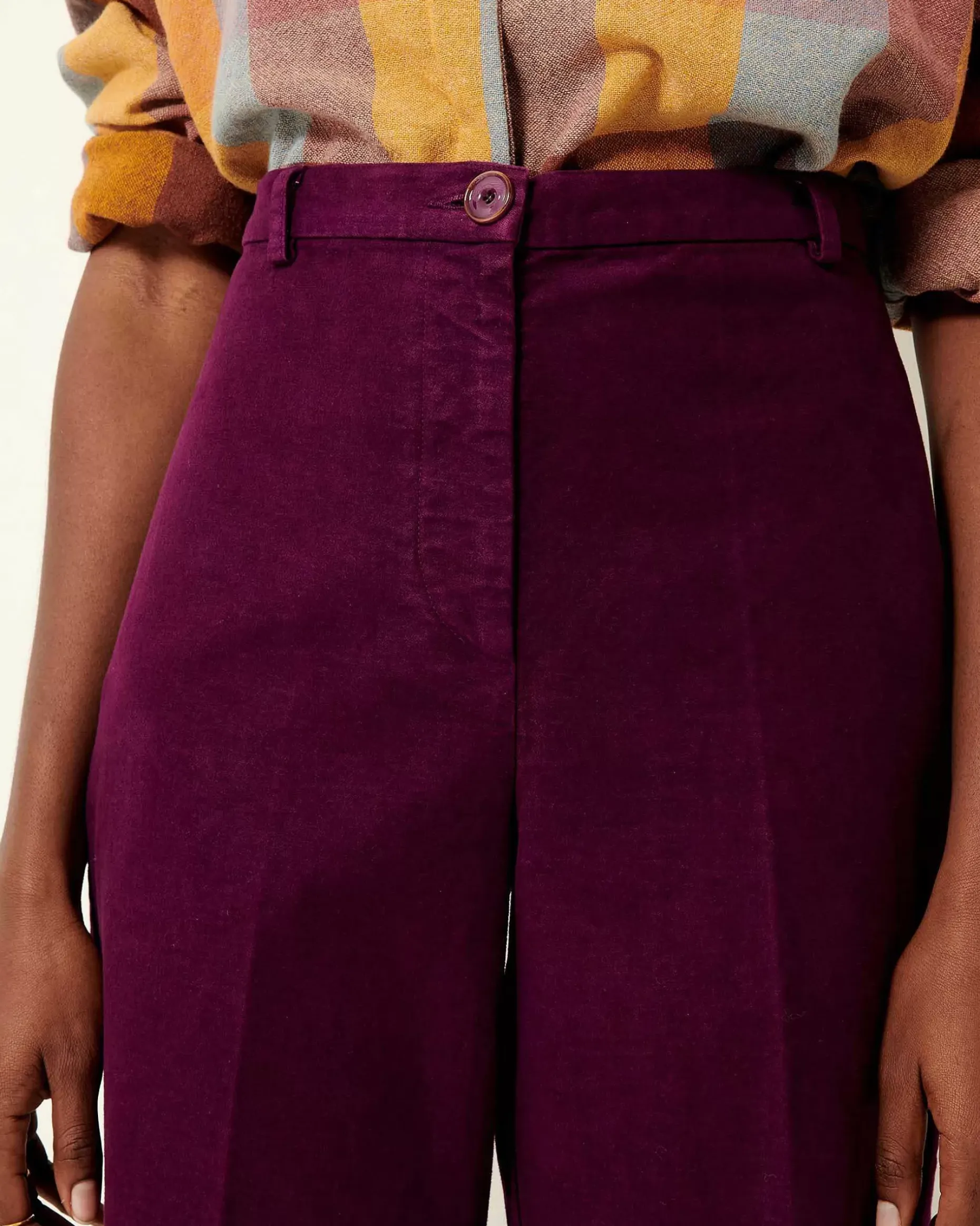 Gerade Geschnittene Hose Mit Bügelfalten Aus Angerautem, Tauchgefärbtem Gabardine In Samtoptik.