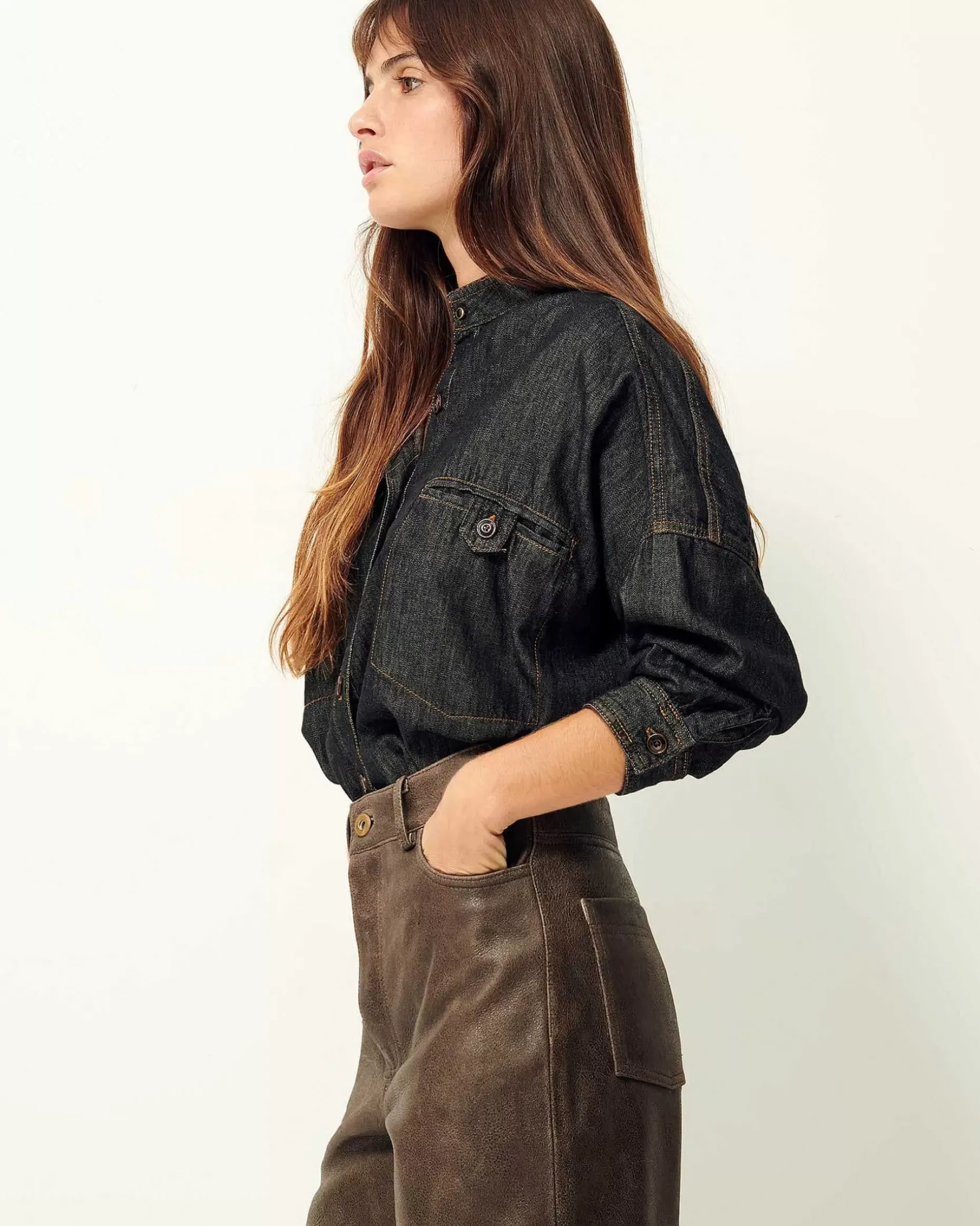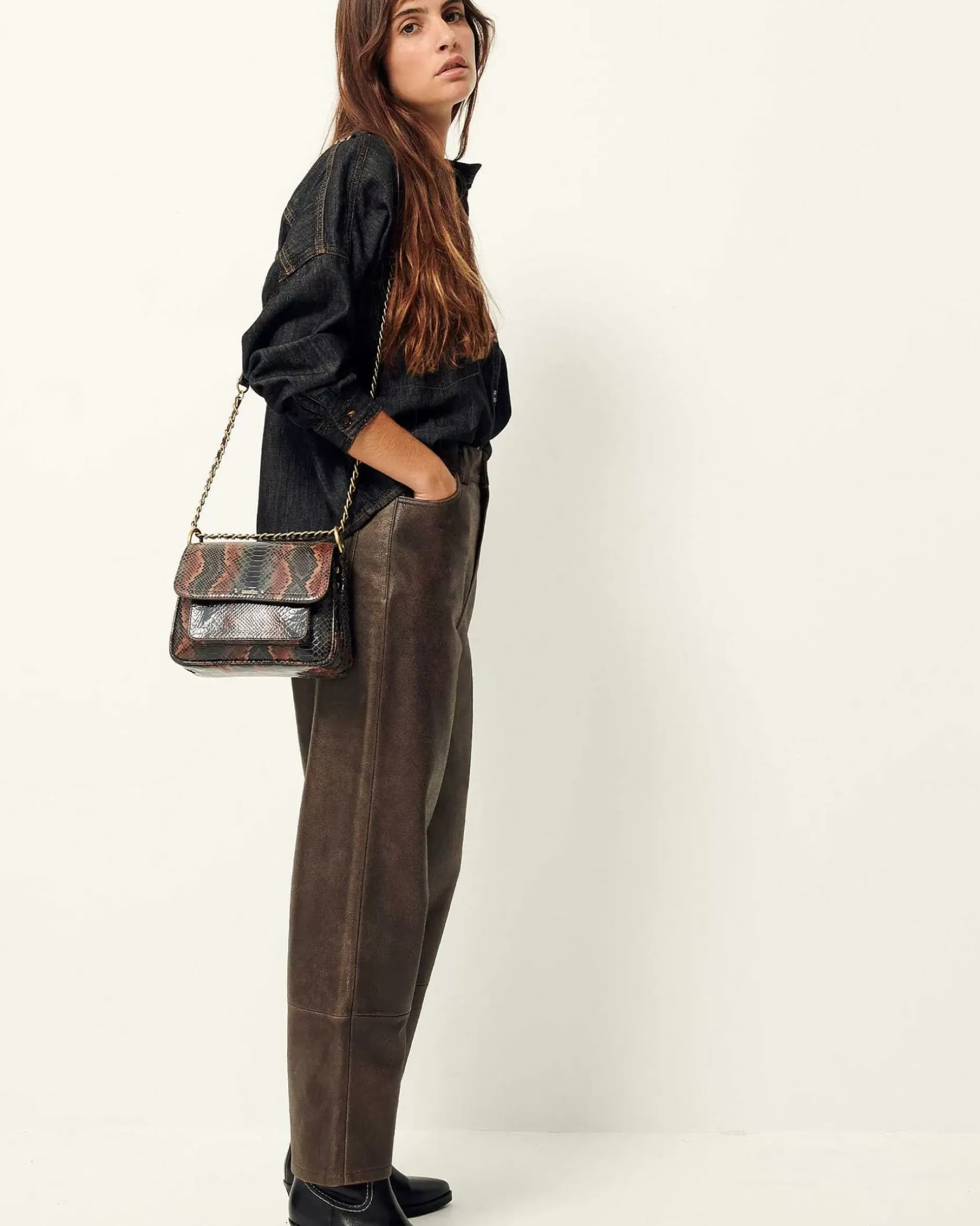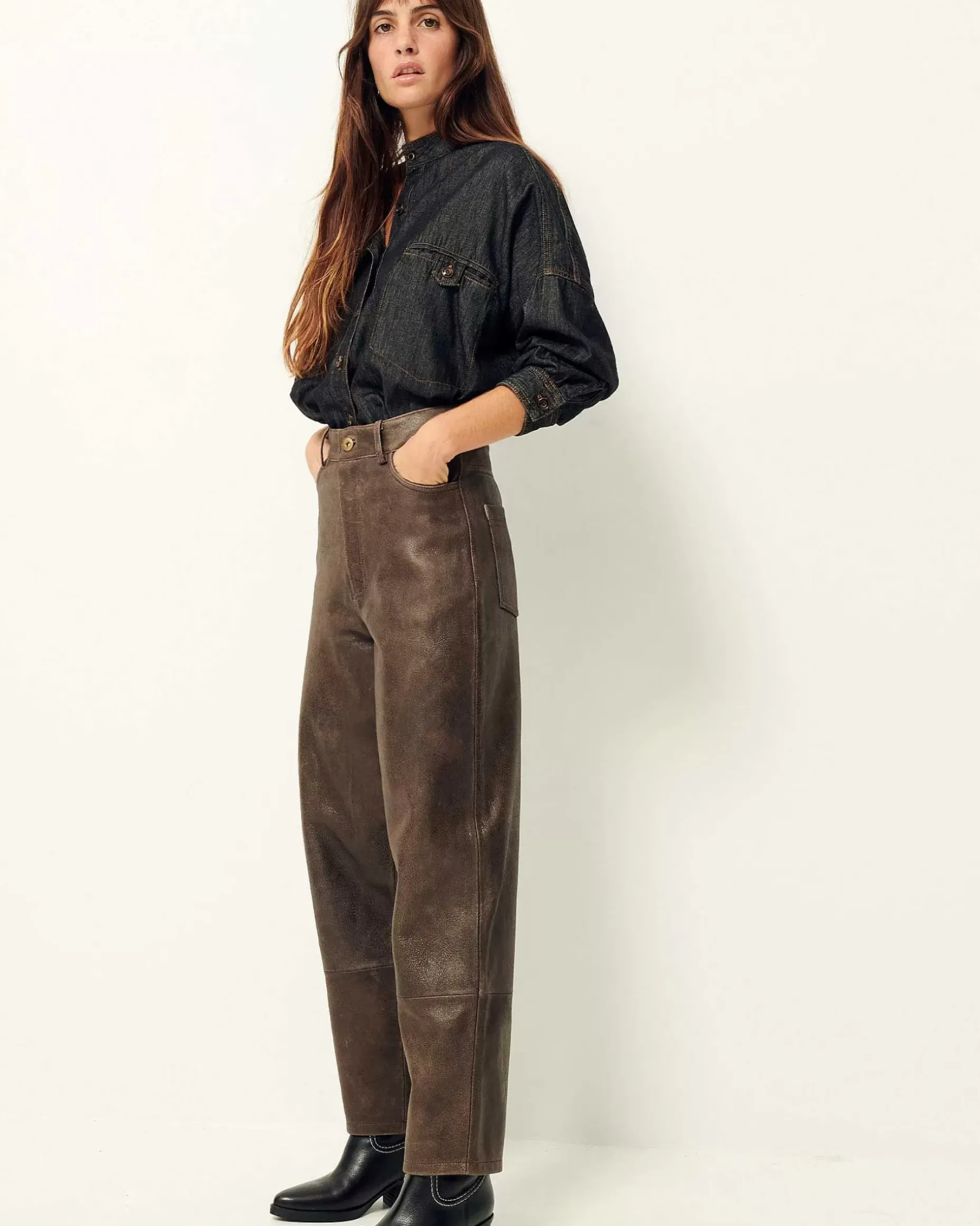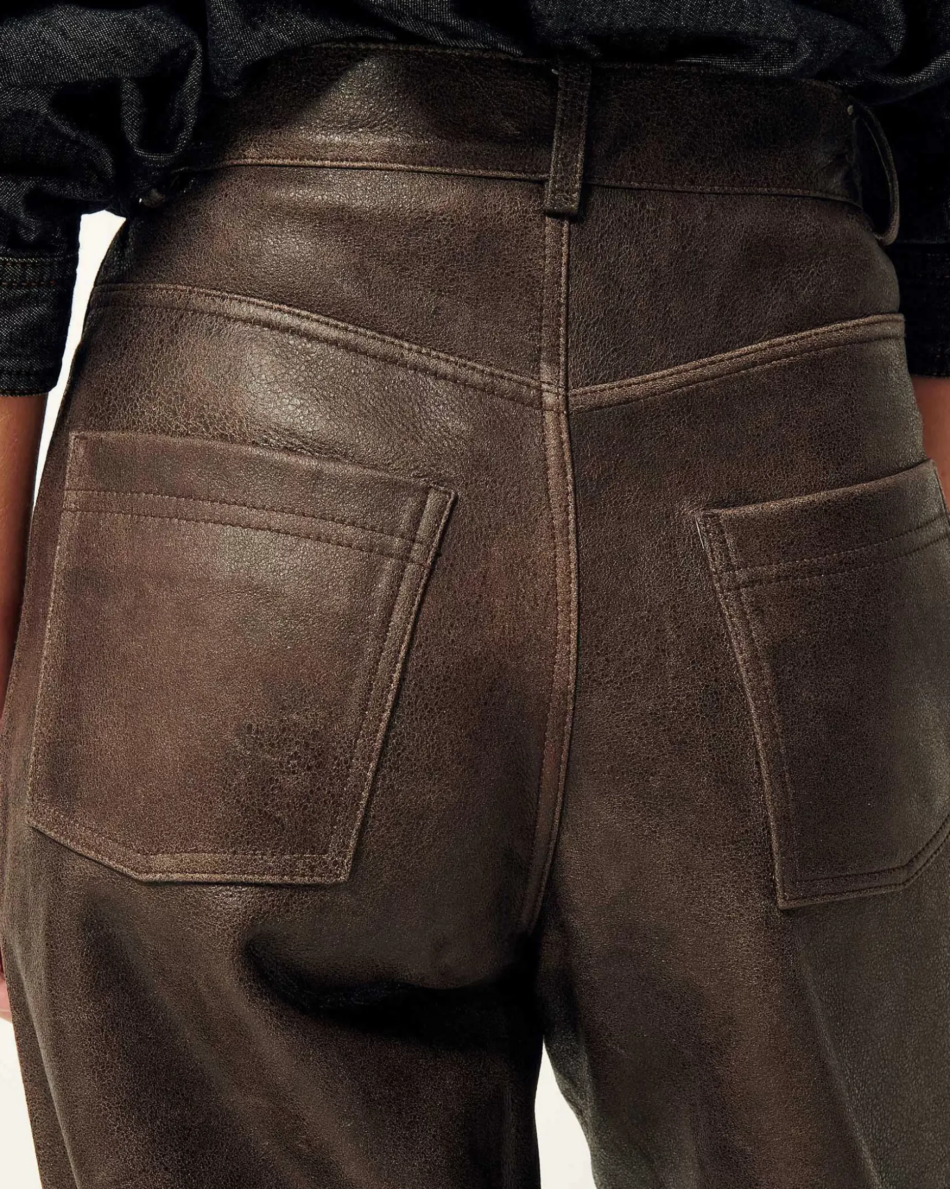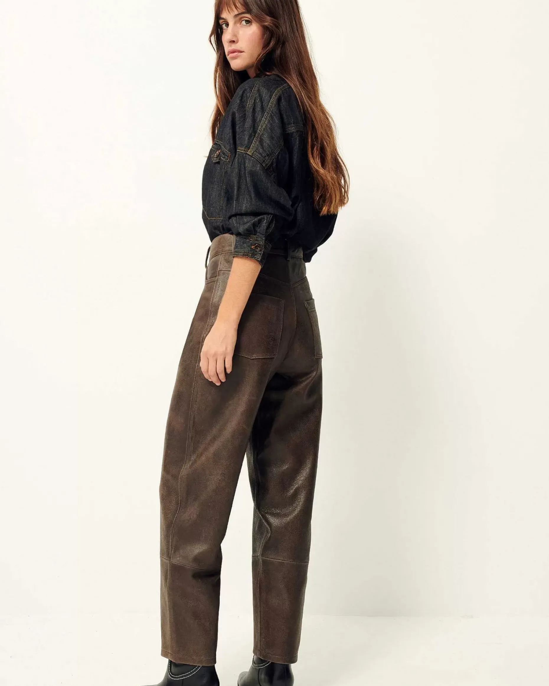 Rundhose Mit Hohem Bund Und Cut-Out-Details Aus Lammleder, Das Auf Alt Getrimmt Wurde.