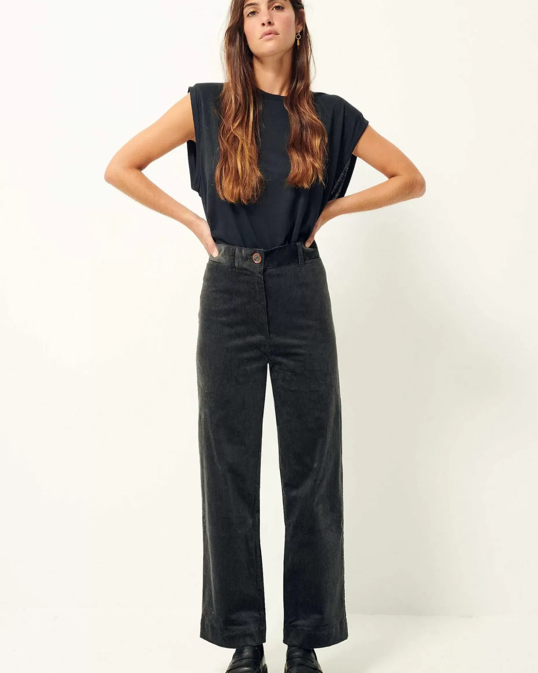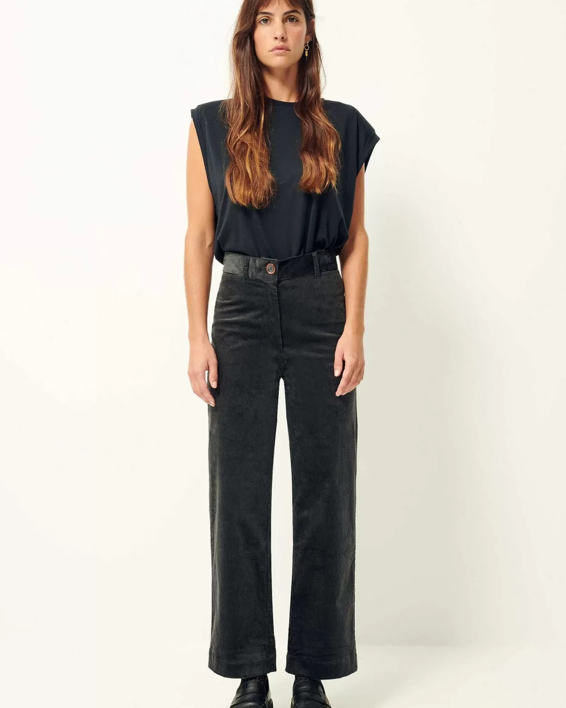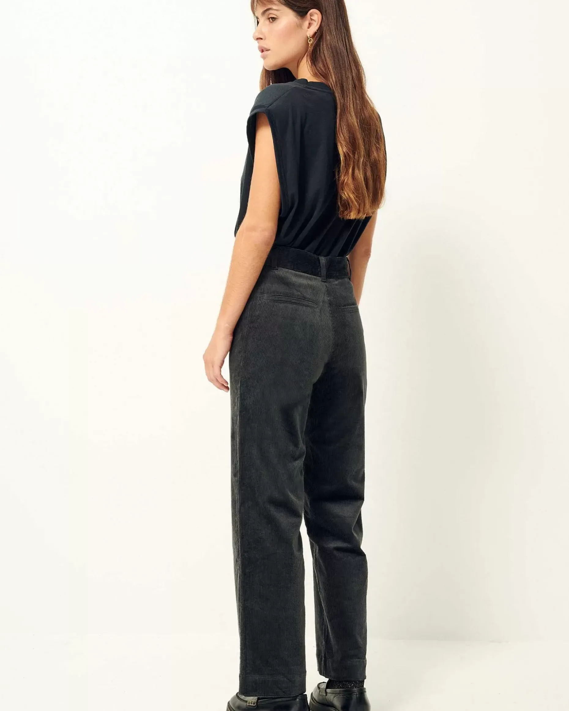 Dunkelgrün Hose In A-Linien-Form Aus In Spanien Gewebtem Seersucker-Cord.
