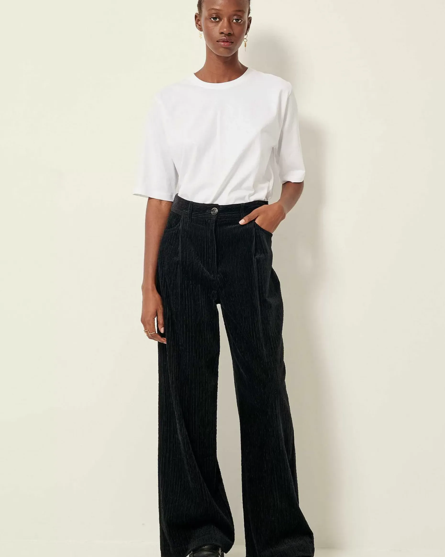 Weite Hose Mit Abnähern Aus Seersucker-Cord.