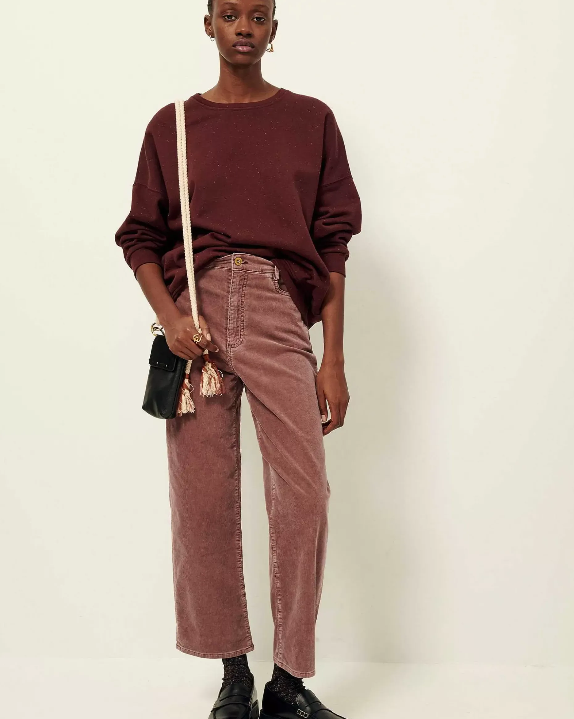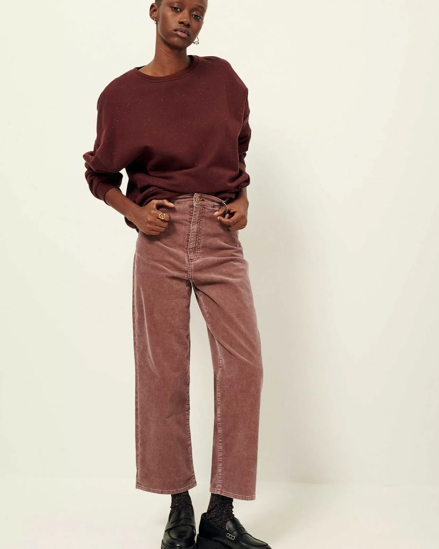 Gerade Geschnittene Hose, 5 Taschen, Aus Feincord, Tauchgefärbt Und Verwaschen.
