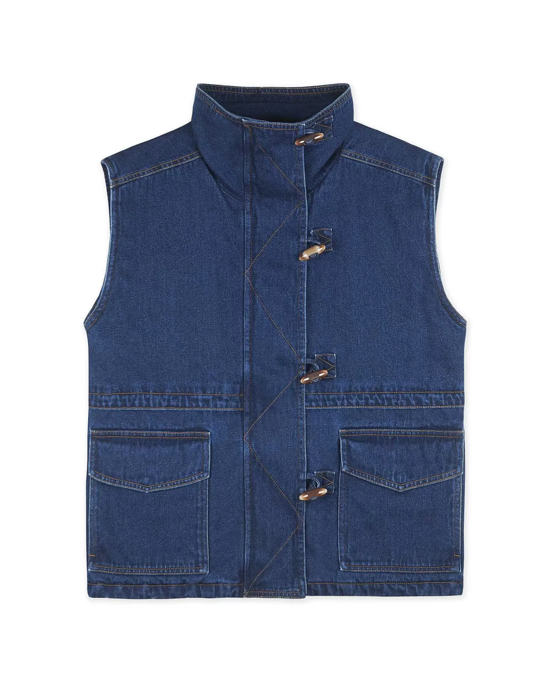 Ärmellose Steppweste Aus Stonewashed Denim, Futter Aus Gestepptem Popeline.