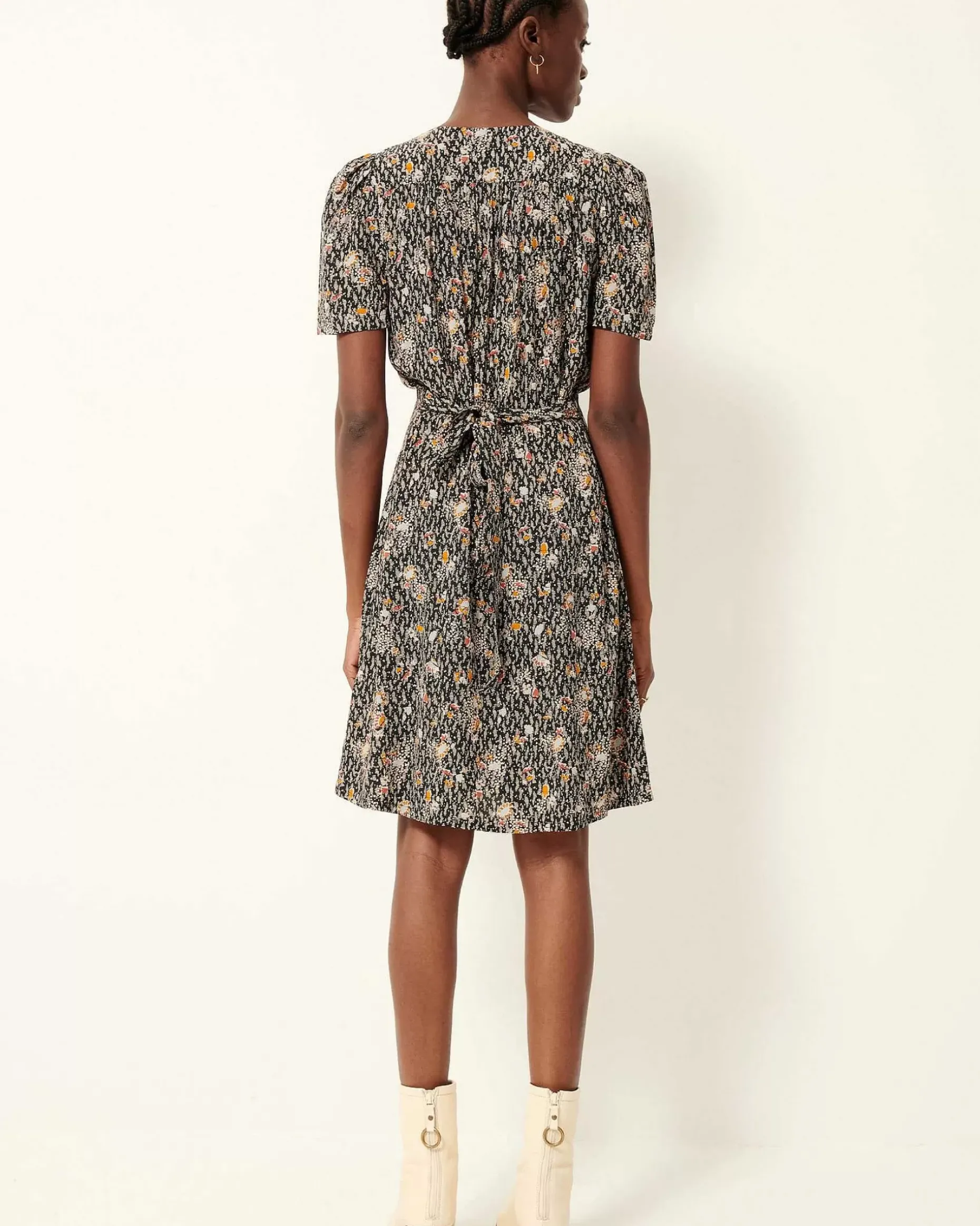 Kurzes, Geknöpftes Kleid Aus Fließendem Und Luftigem, Bedrucktem Viskosegewebe, Exklusives Sessùn-Muster.Die Für Die Herstellung Dieses Artikels Verarbeitete Viskose Wurde Aus Holz Aus Zertifiziert Nachhaltiger Und Im Respektvollen Umgang Mit Ressourcen…