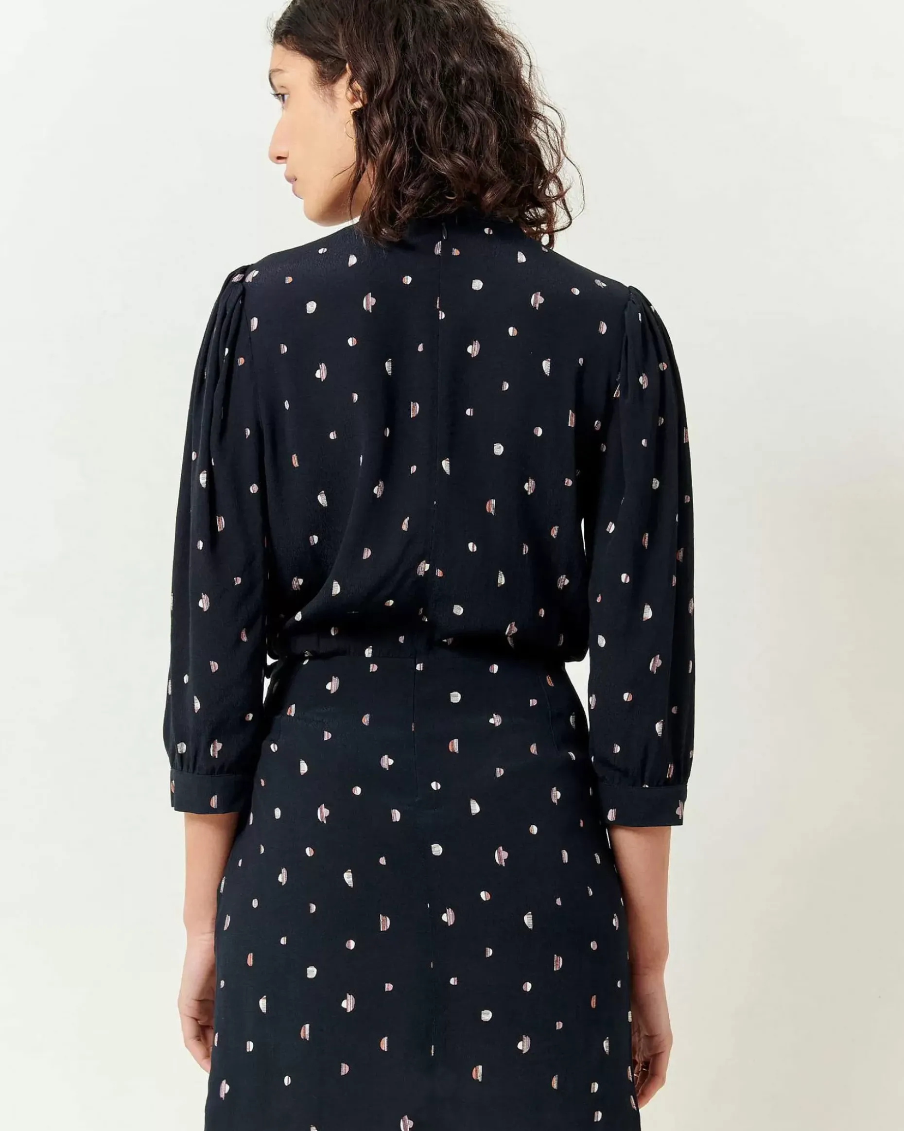 Kurzes, Überkreuztes Kleid Mit Bindebändern Aus Bedrucktem Viskose-Krepp, Exklusives Sessùn-Muster.