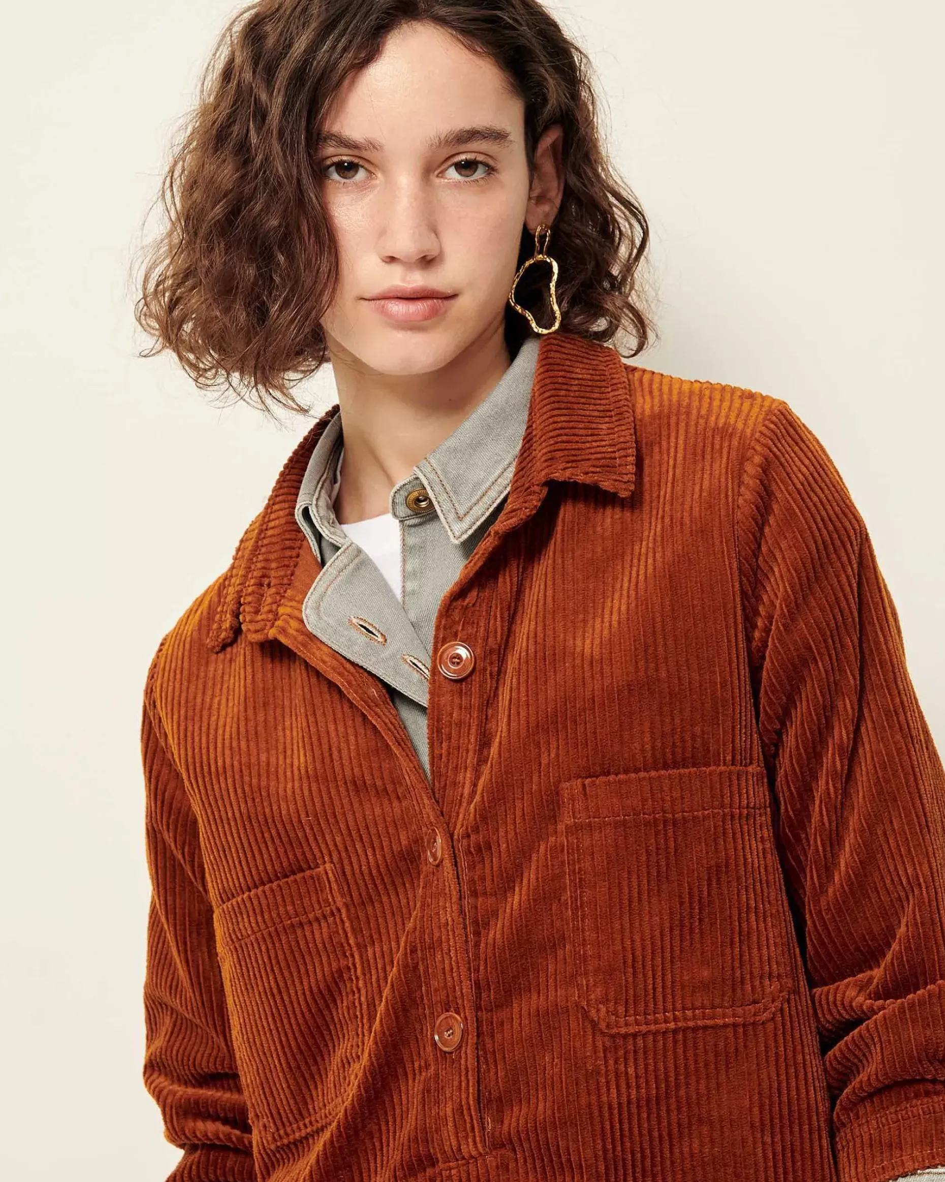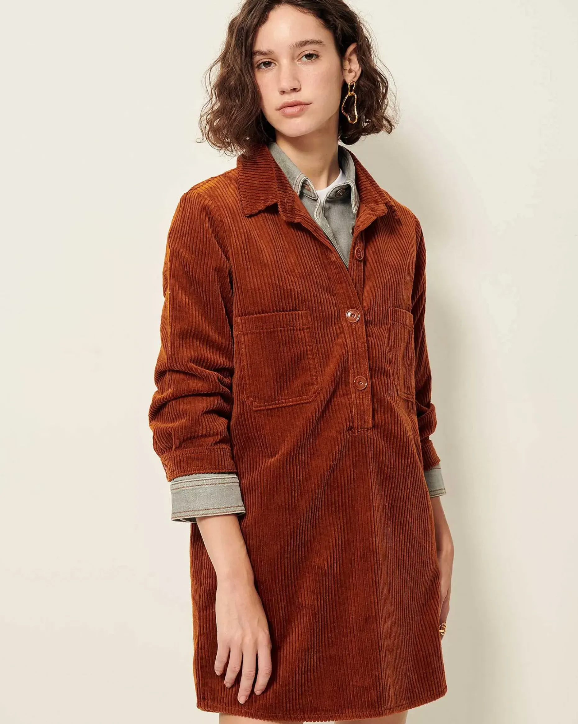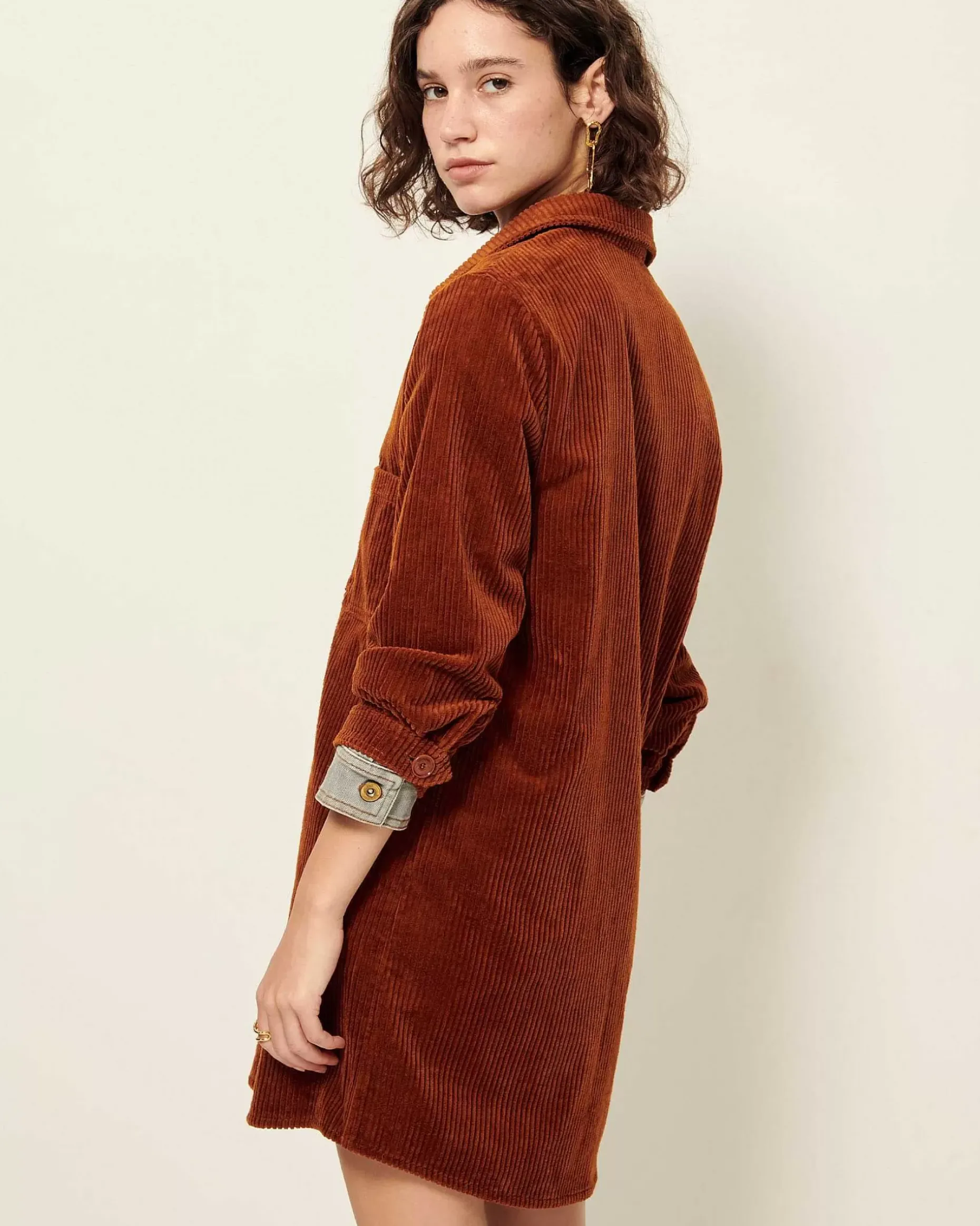 Kleid Im Herrenhemden-Stil Aus Gewaschenem, In Frankreich Gewebtem Samtcord Mit 500 Rippen.