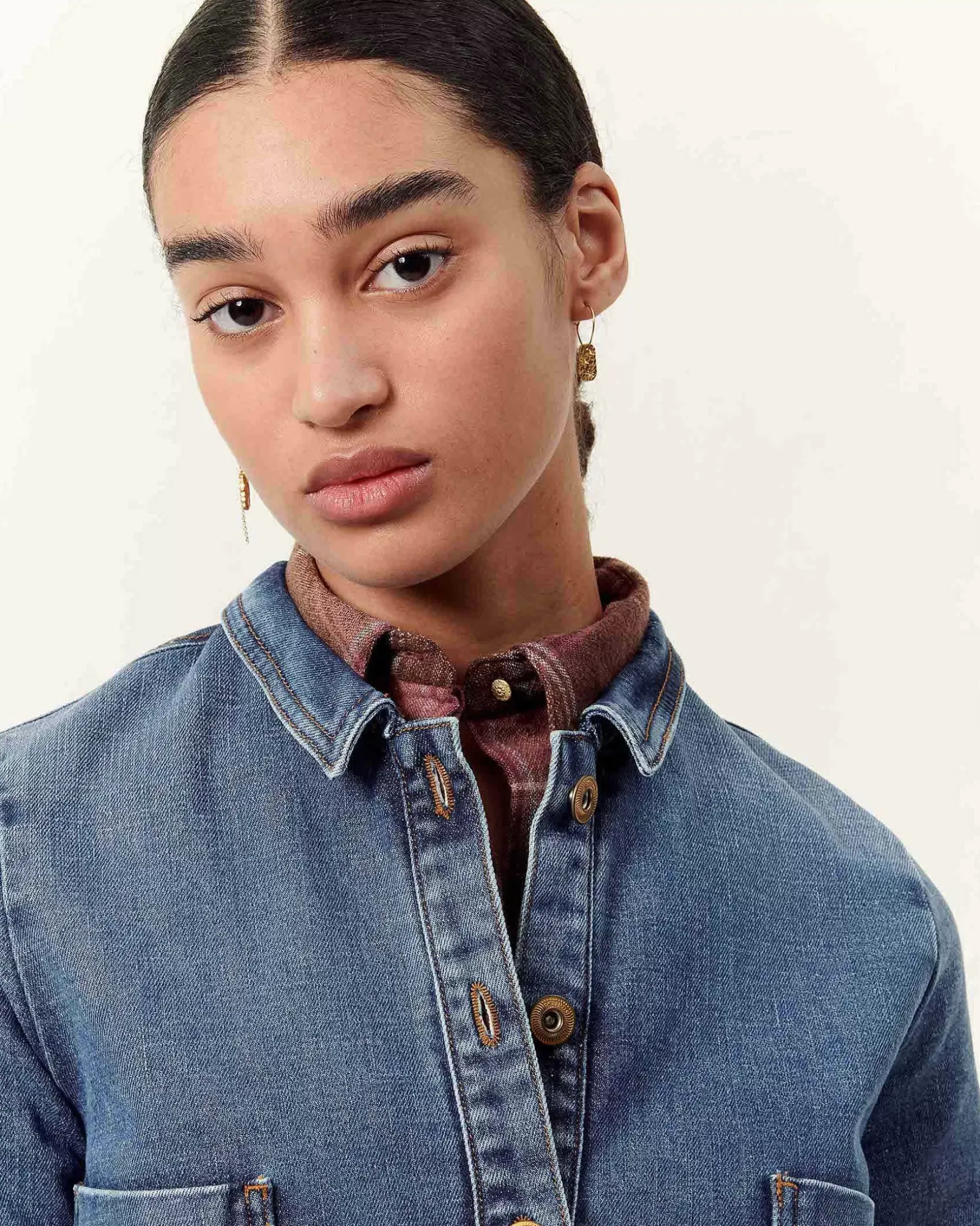 Kurzes Kleid Im Liquette-Stil Aus Stonewashed Denim.