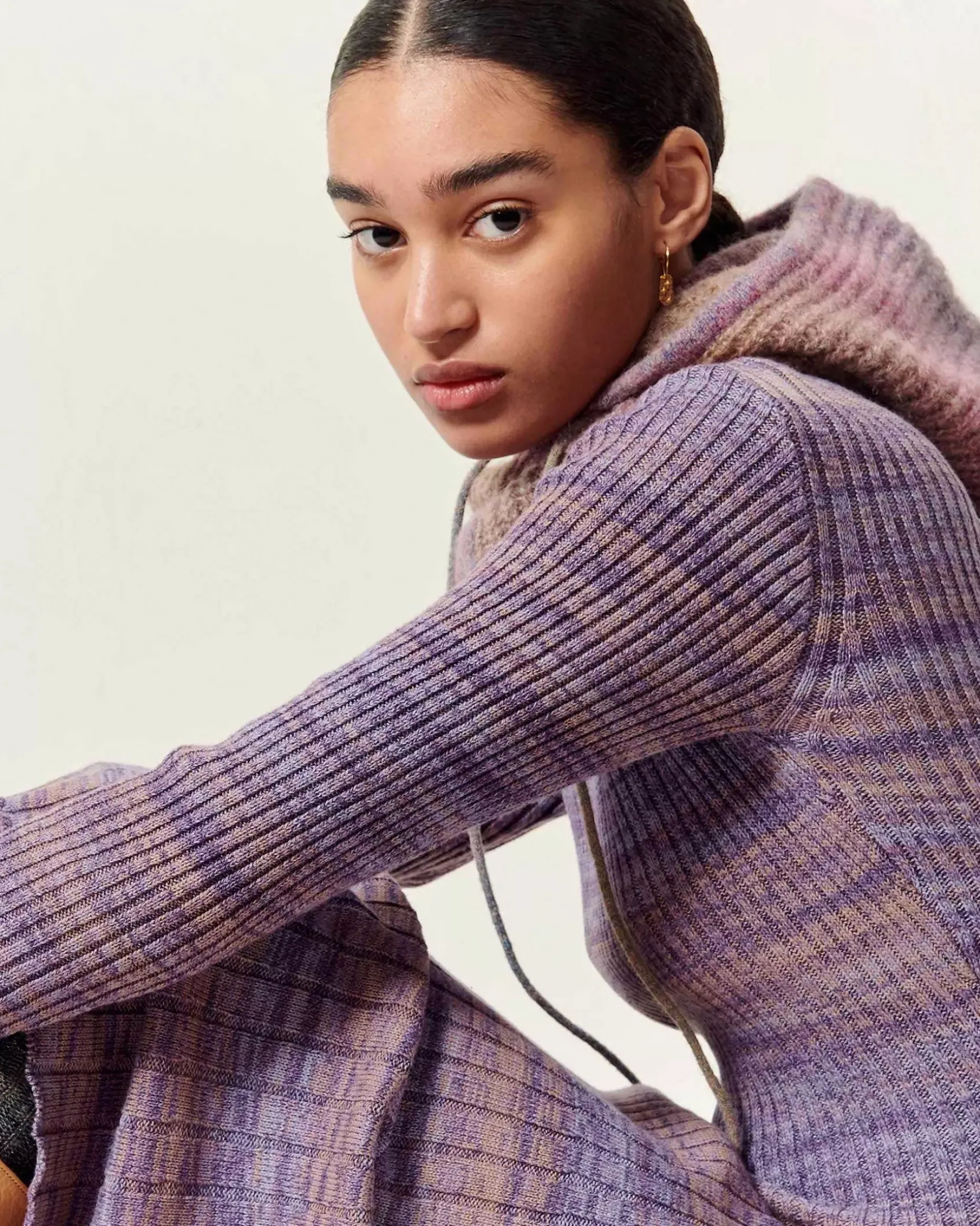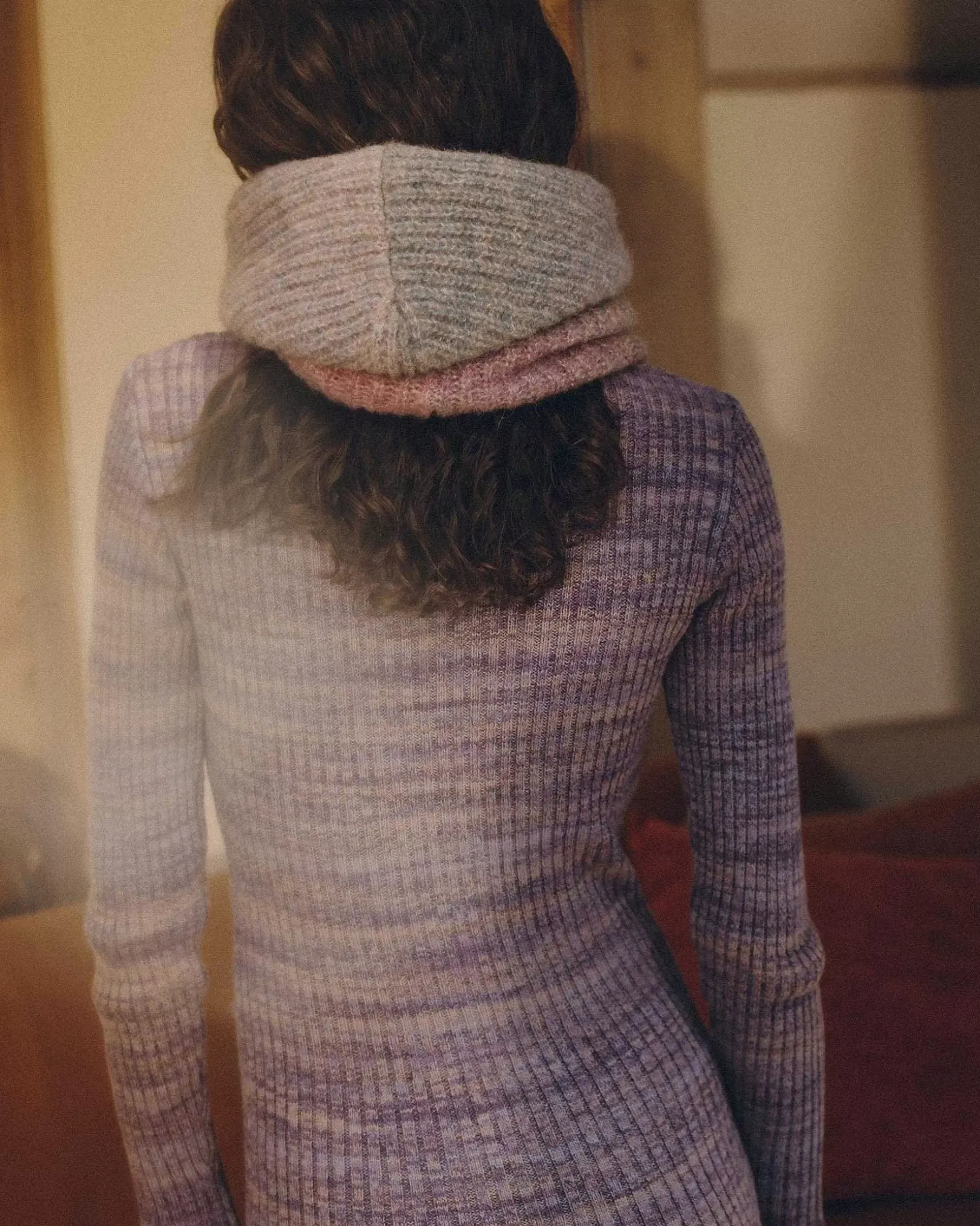 Langes Kleid Aus Gleichmäßig Gestrickten Rippen, Sonnenplissee-Effekt.