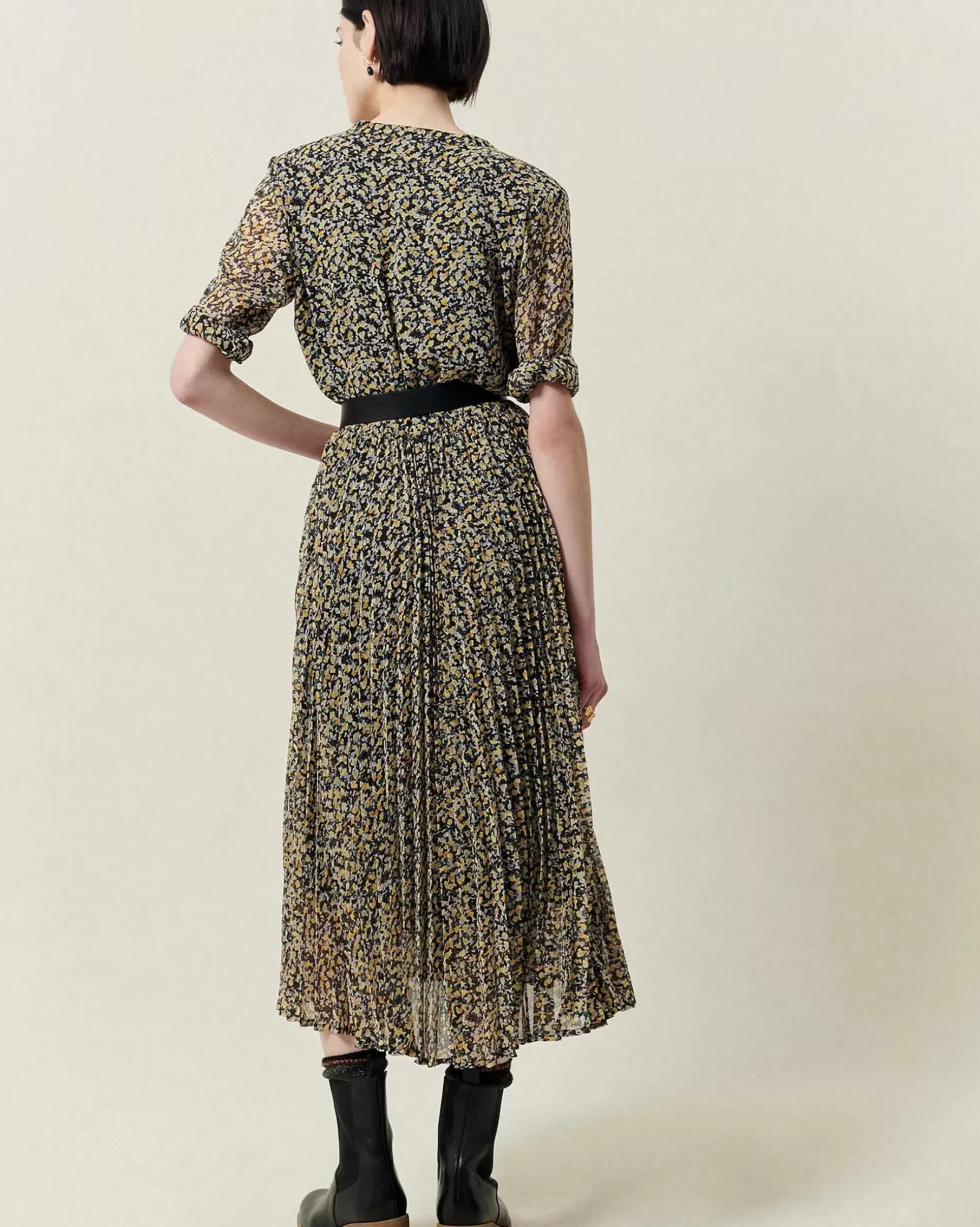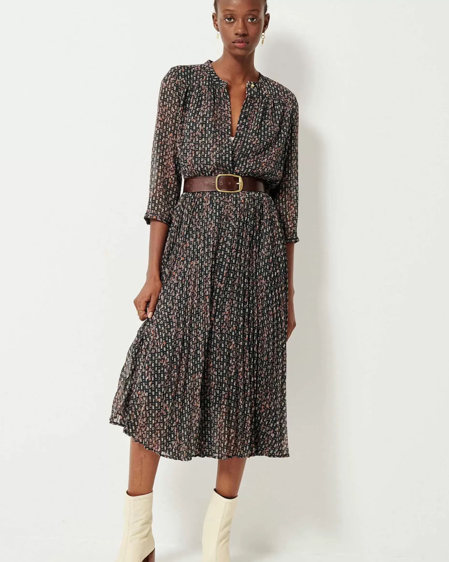 Langes Kleid Aus Plissiertem, Bedrucktem Musselin-Krepp, Exklusives Sessùn-Muster.