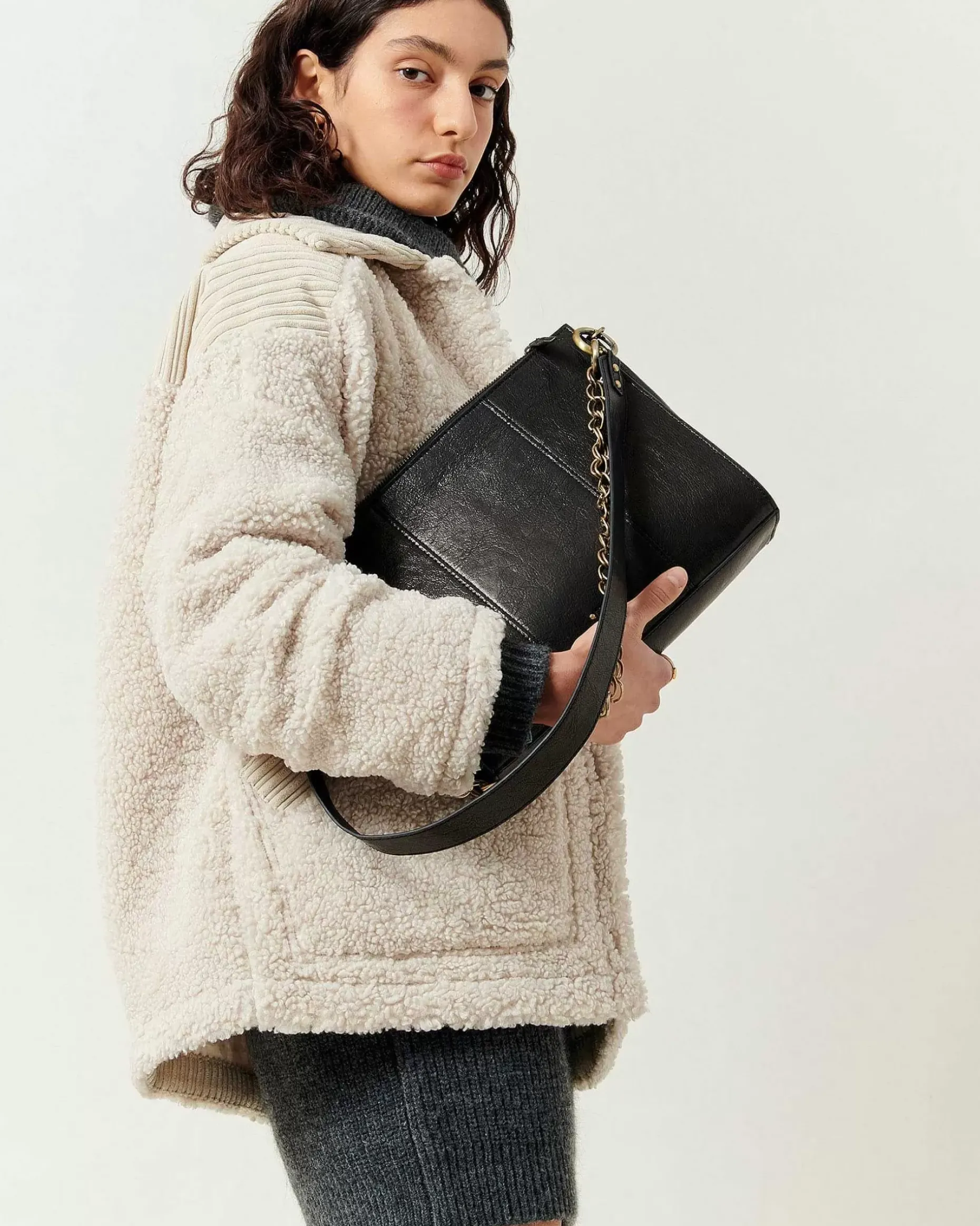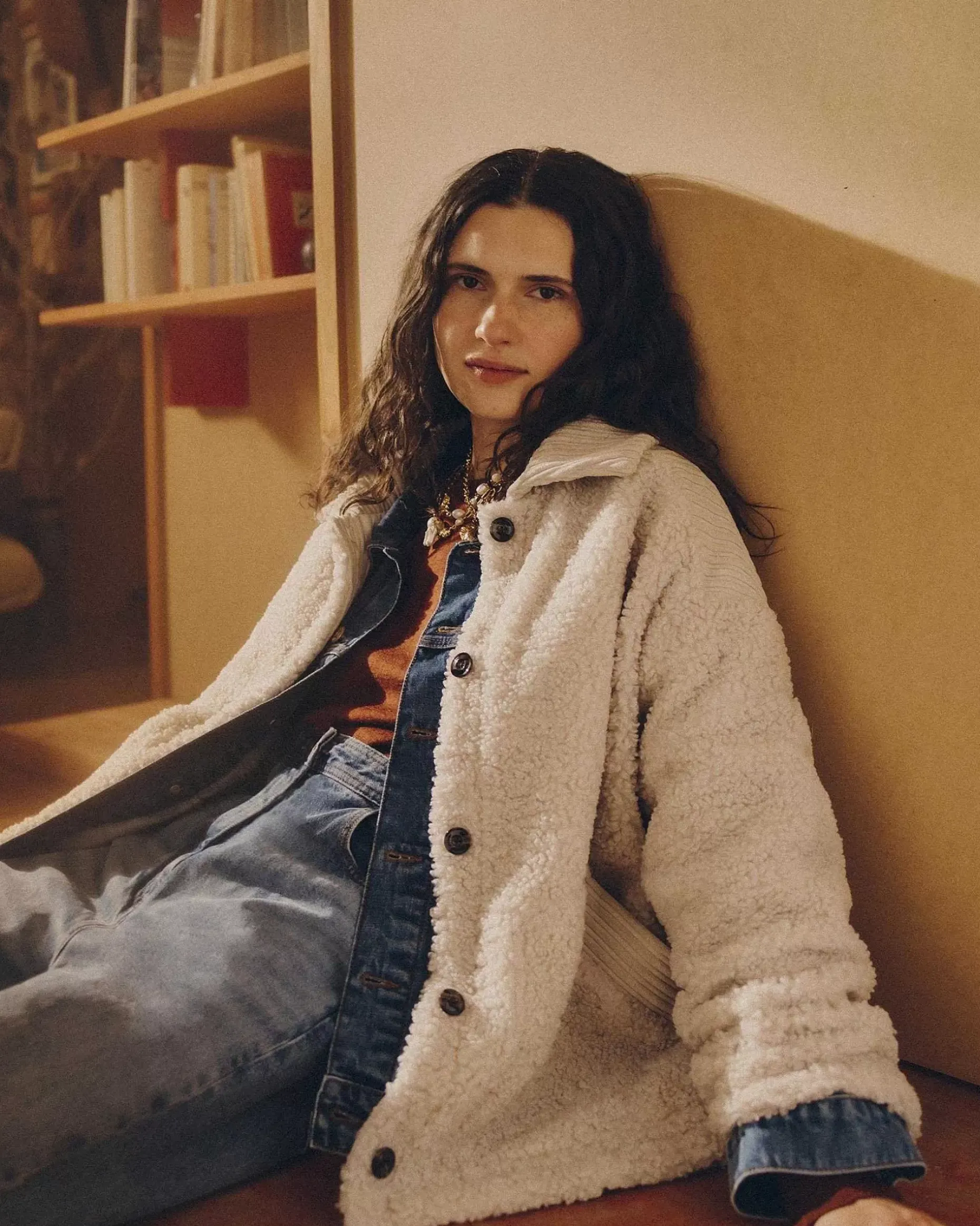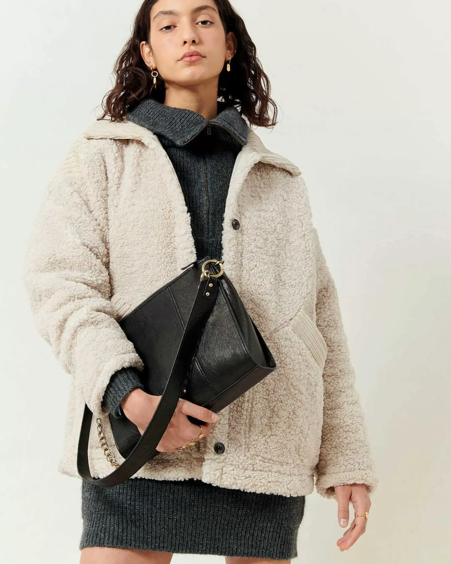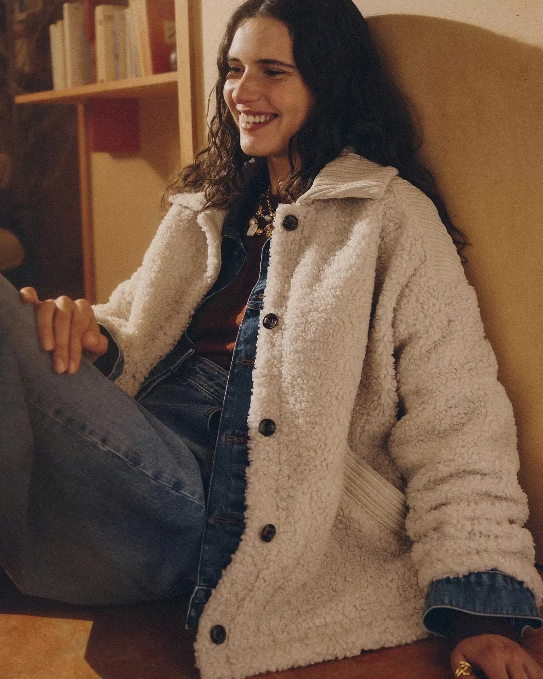 Weite Jacke Aus Schaffellimitat, Einsätze Aus Feincord Mit Unregelmäßigen Rippen.
