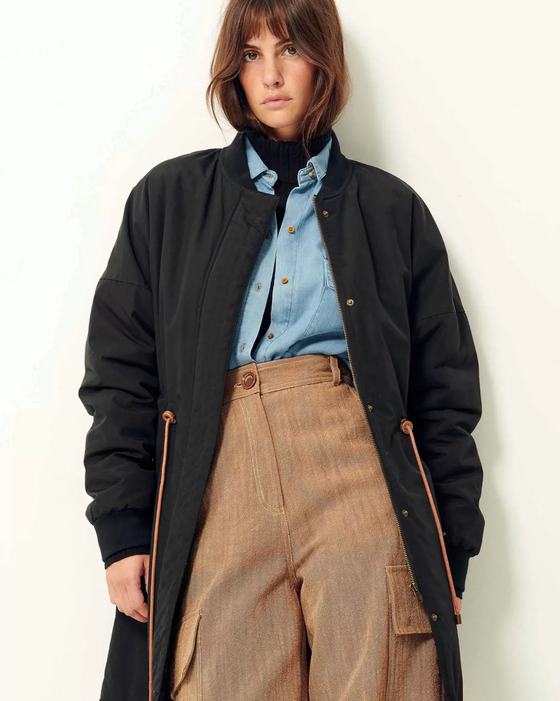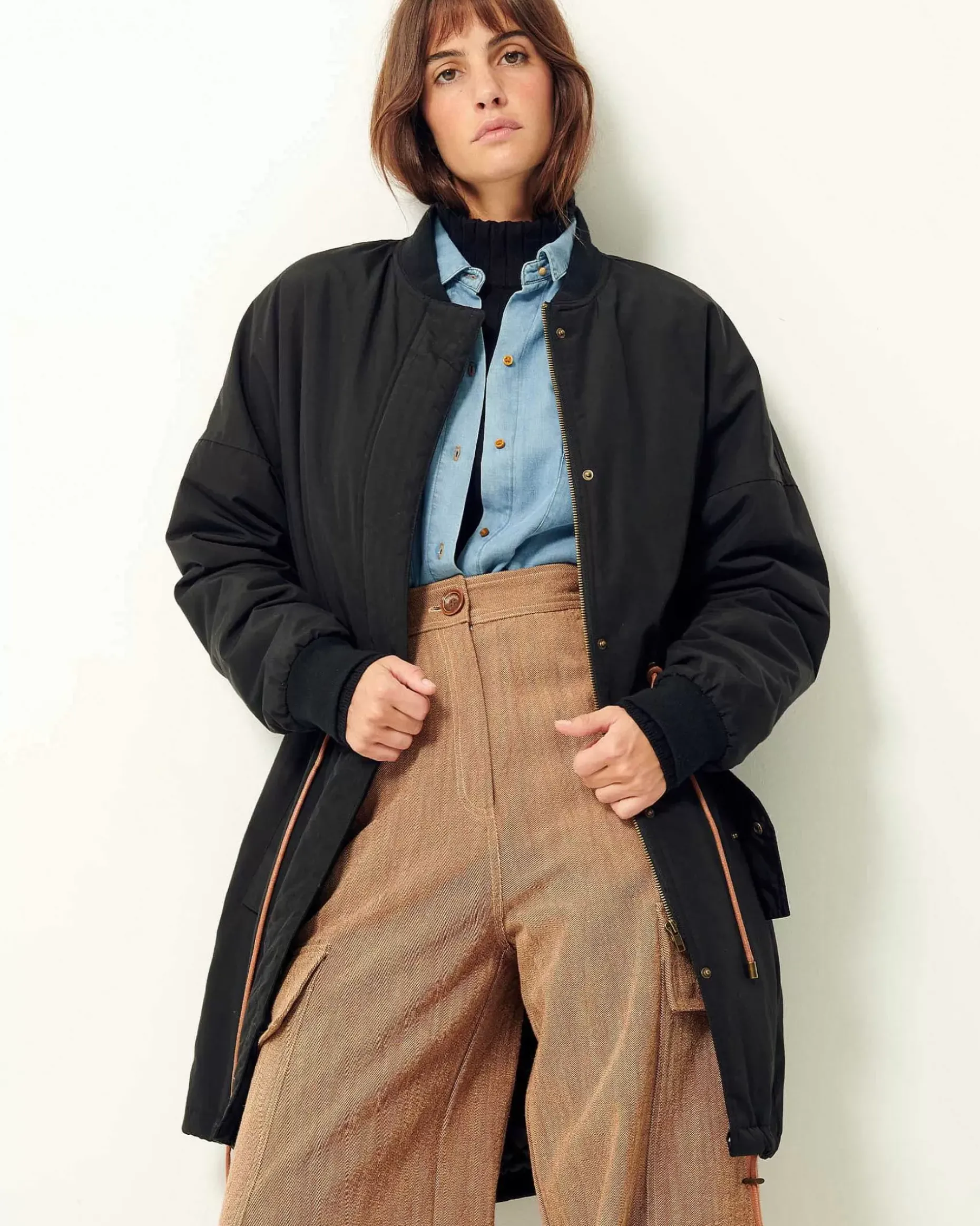 Halblange Bomberjacke Aus Leichtem, Wasserabweisendem, Wattiertem Nylon Mit Verspielten Rippstrickbündchen Und Matelassé-Futter.