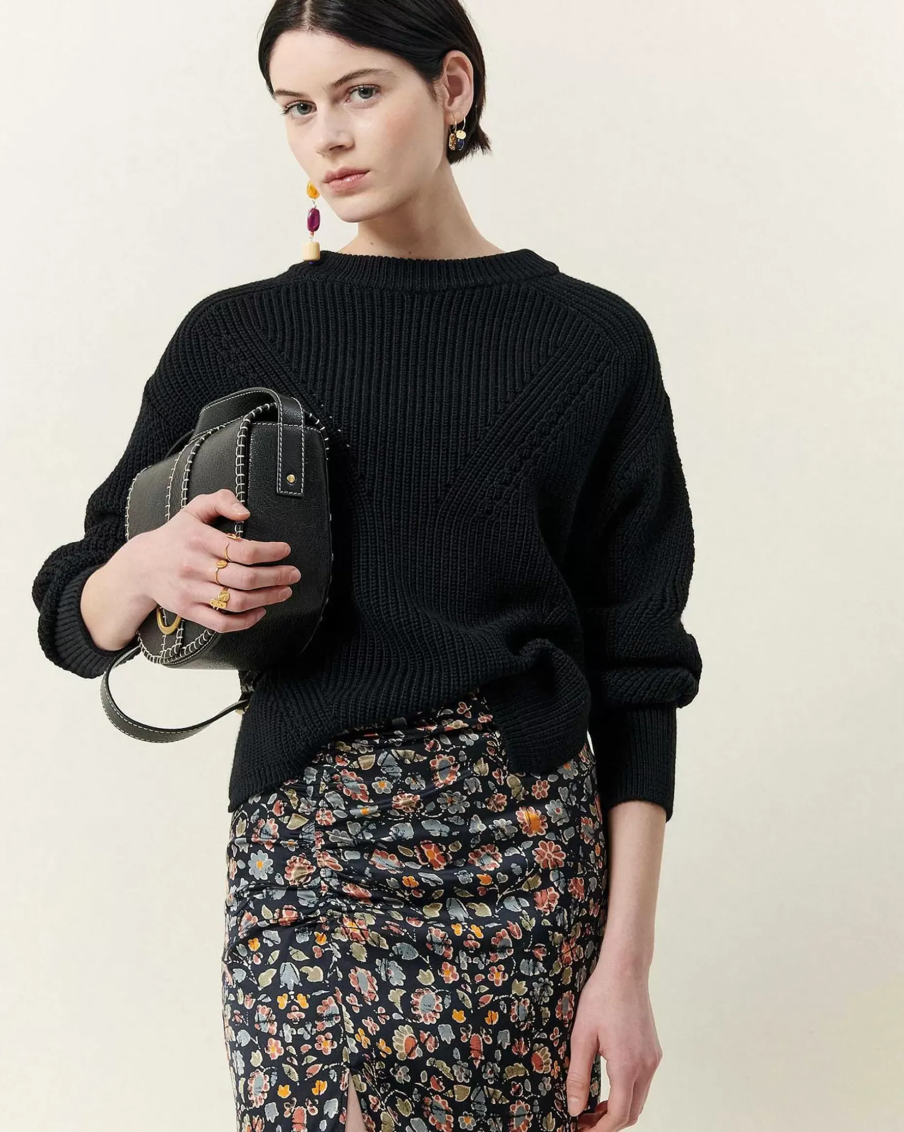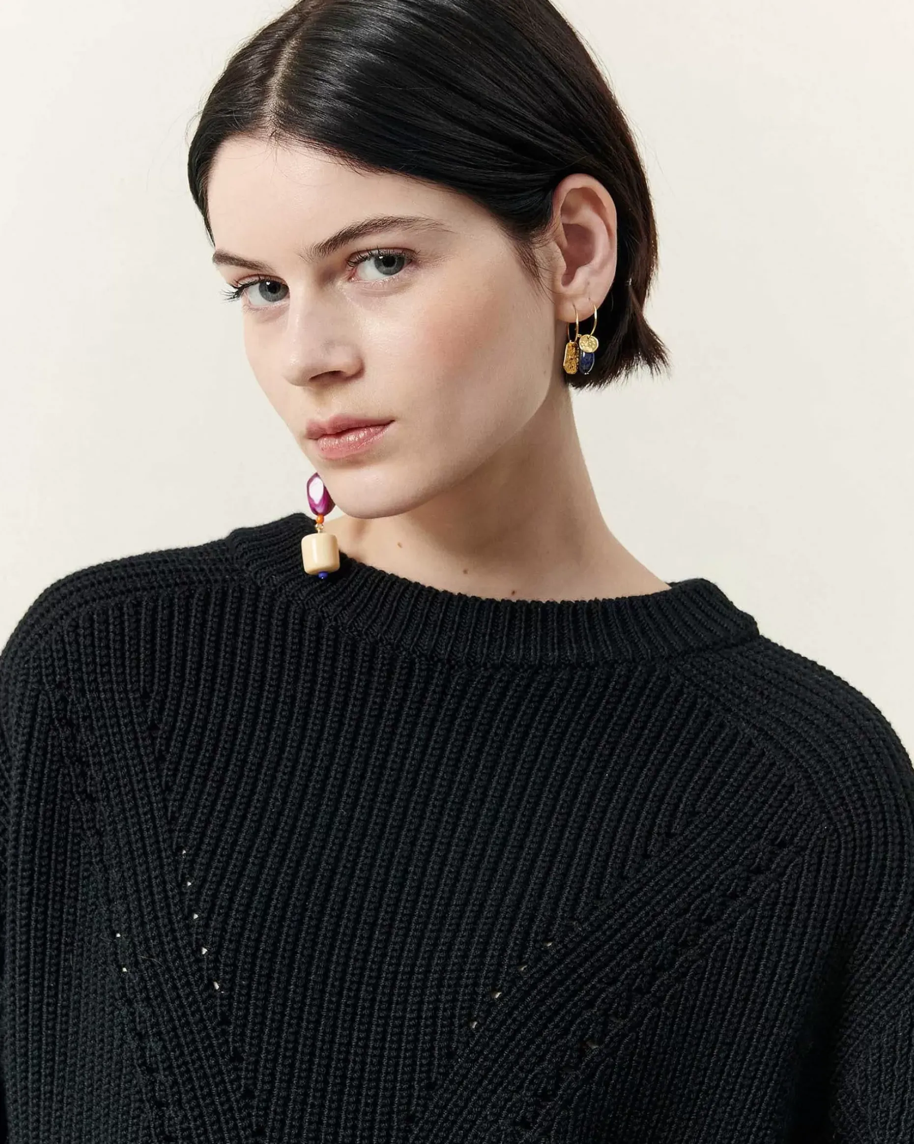 Weit Geschnittener, Perlenbesetzter Rippstrickpullover Mit Langen Ärmeln.