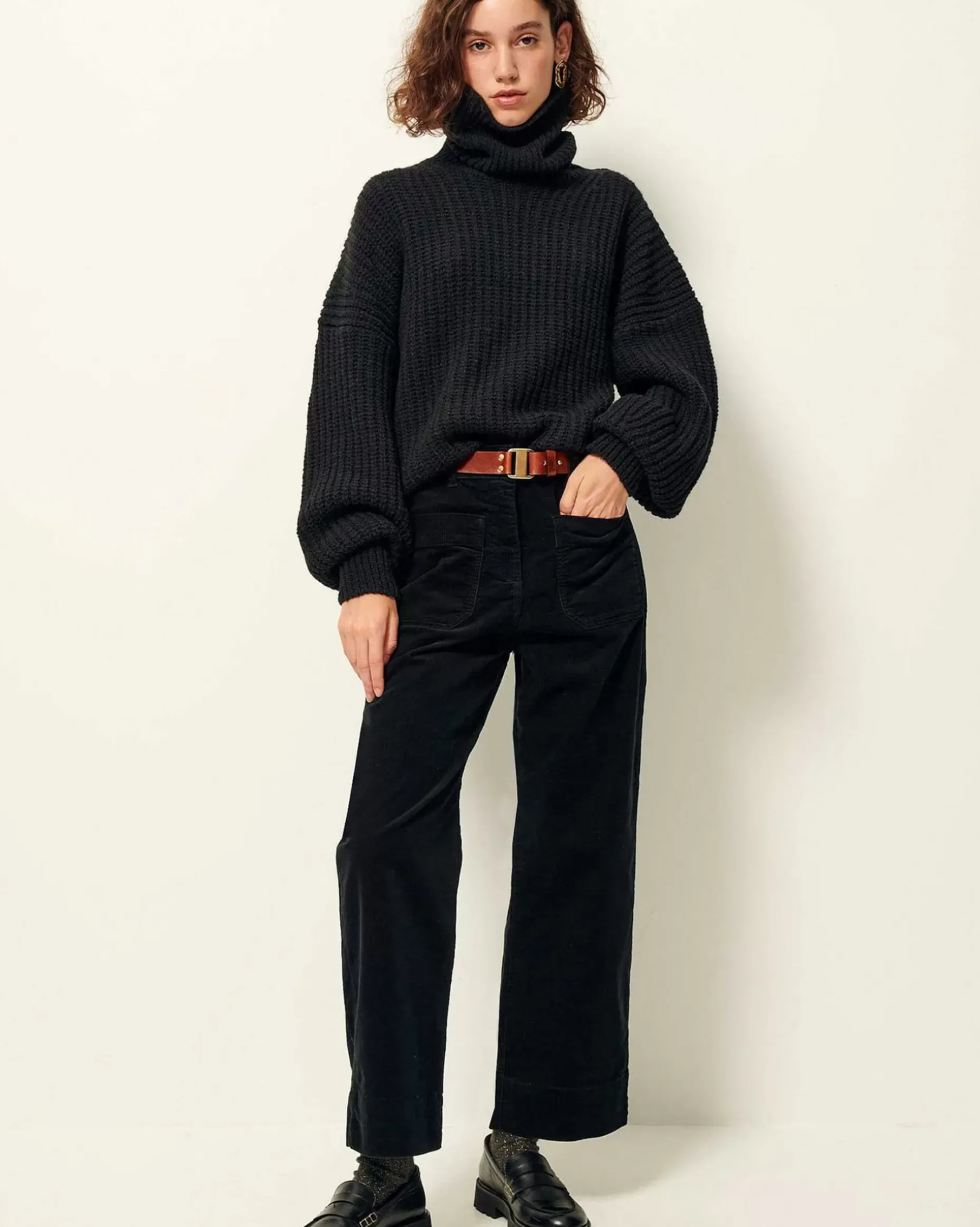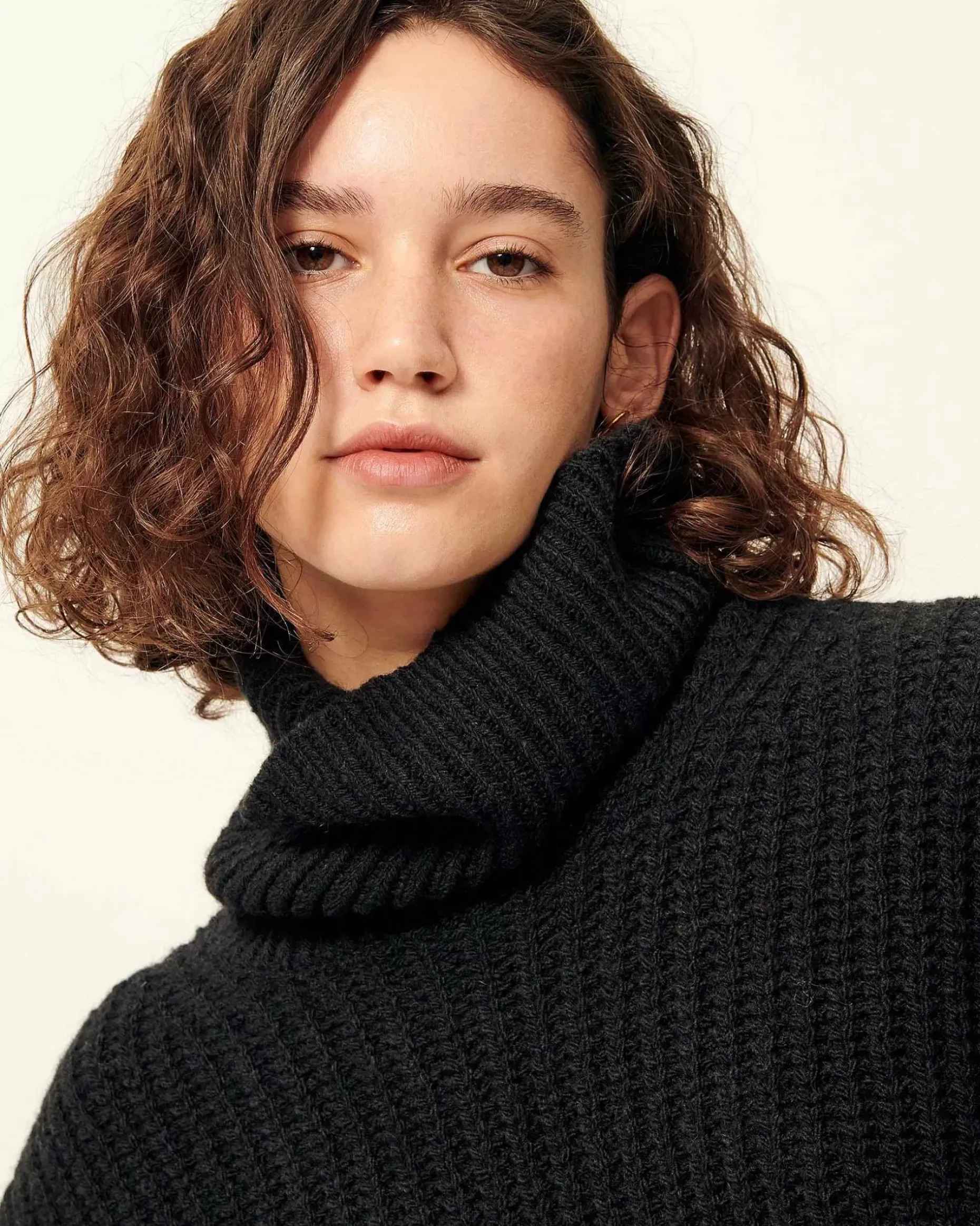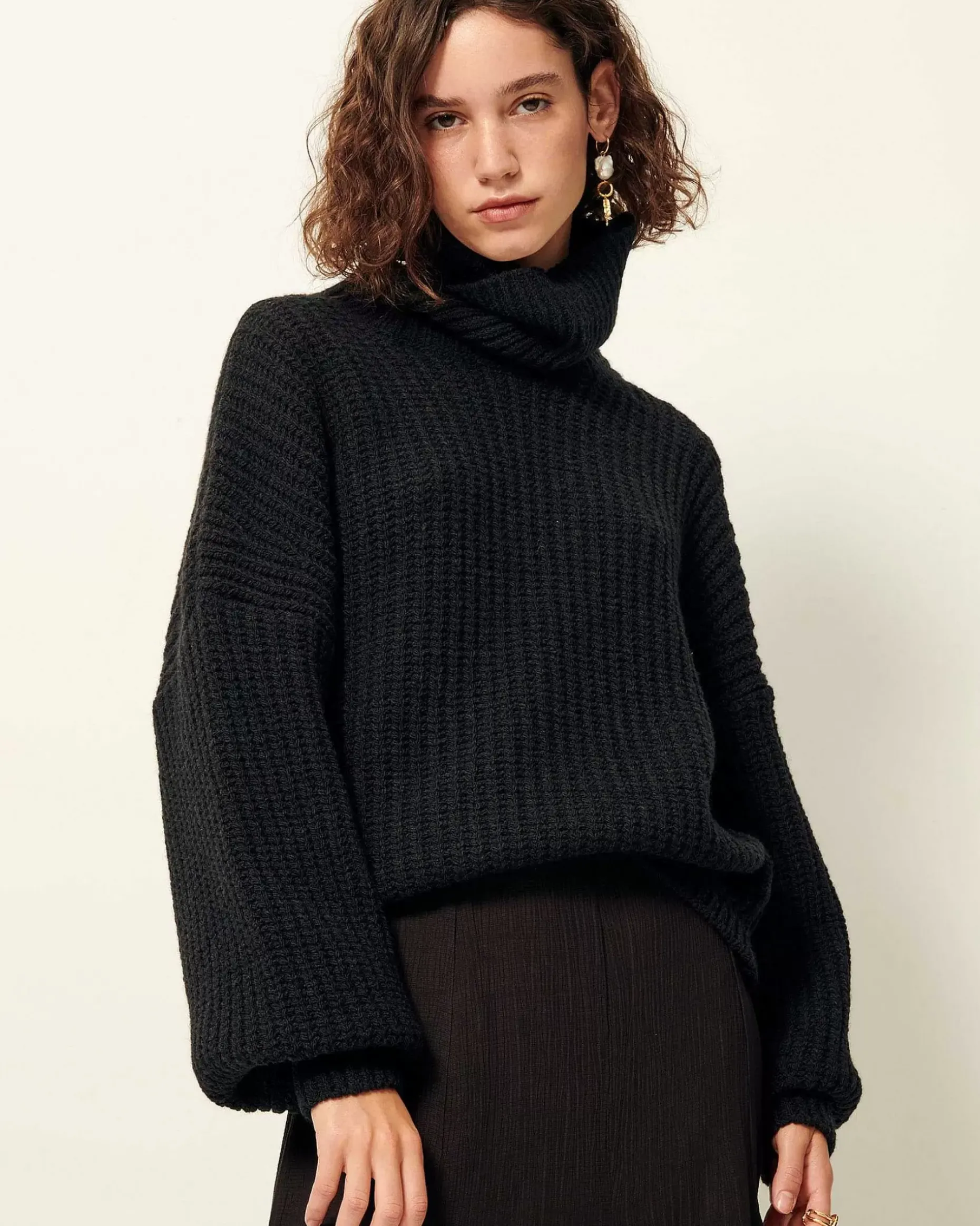 Rollkragenpulli Aus Grobem Rippstrick, Italienische Strickarbeit.Verspielte Rippenbündchen.