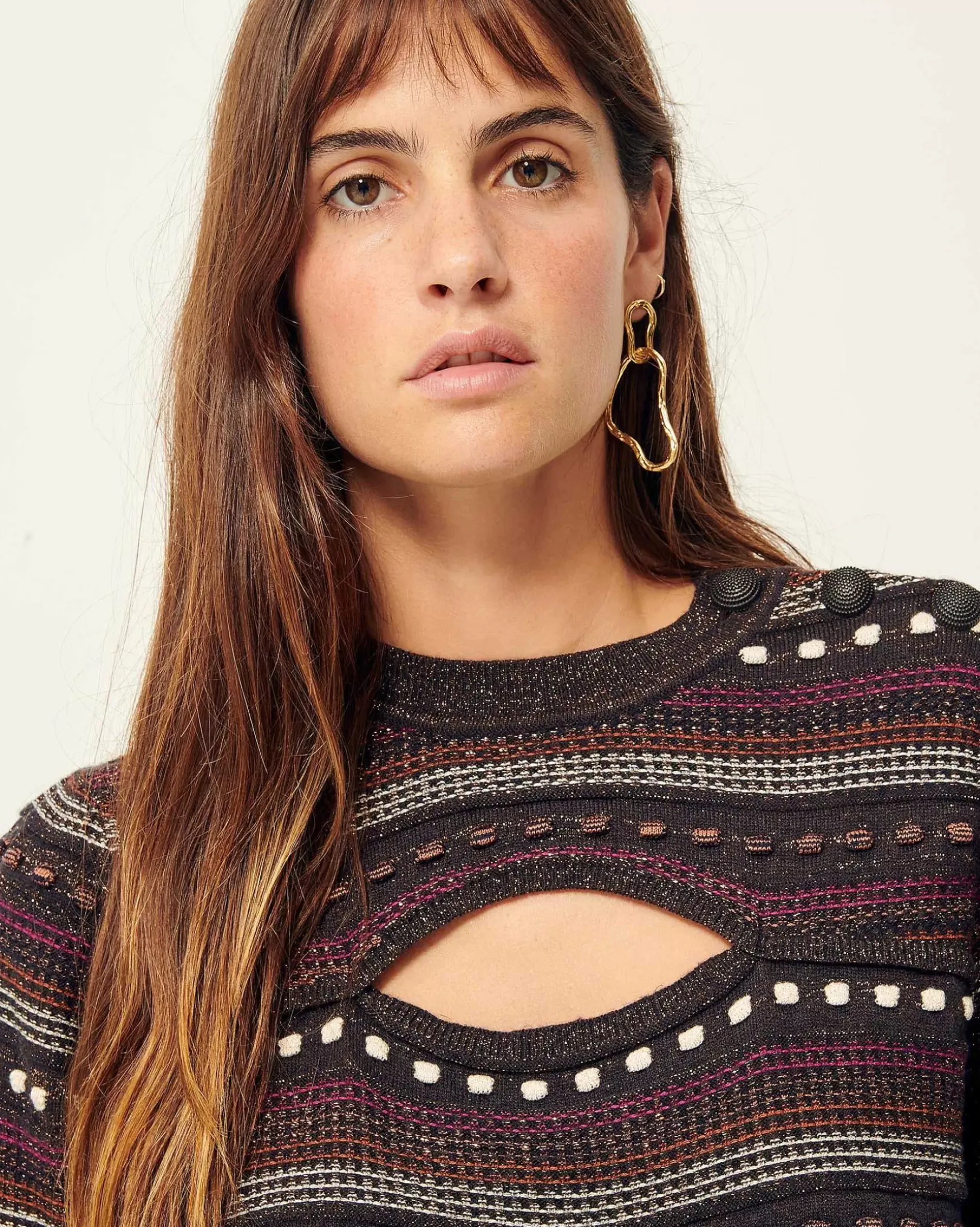 Jacquard-Strickpullover Mit Cut-Out Auf Der Vorderseite, Bunte Streifen Und Verspieltes, Texturiertes Muster, Exklusives Sessùn-Muster.
