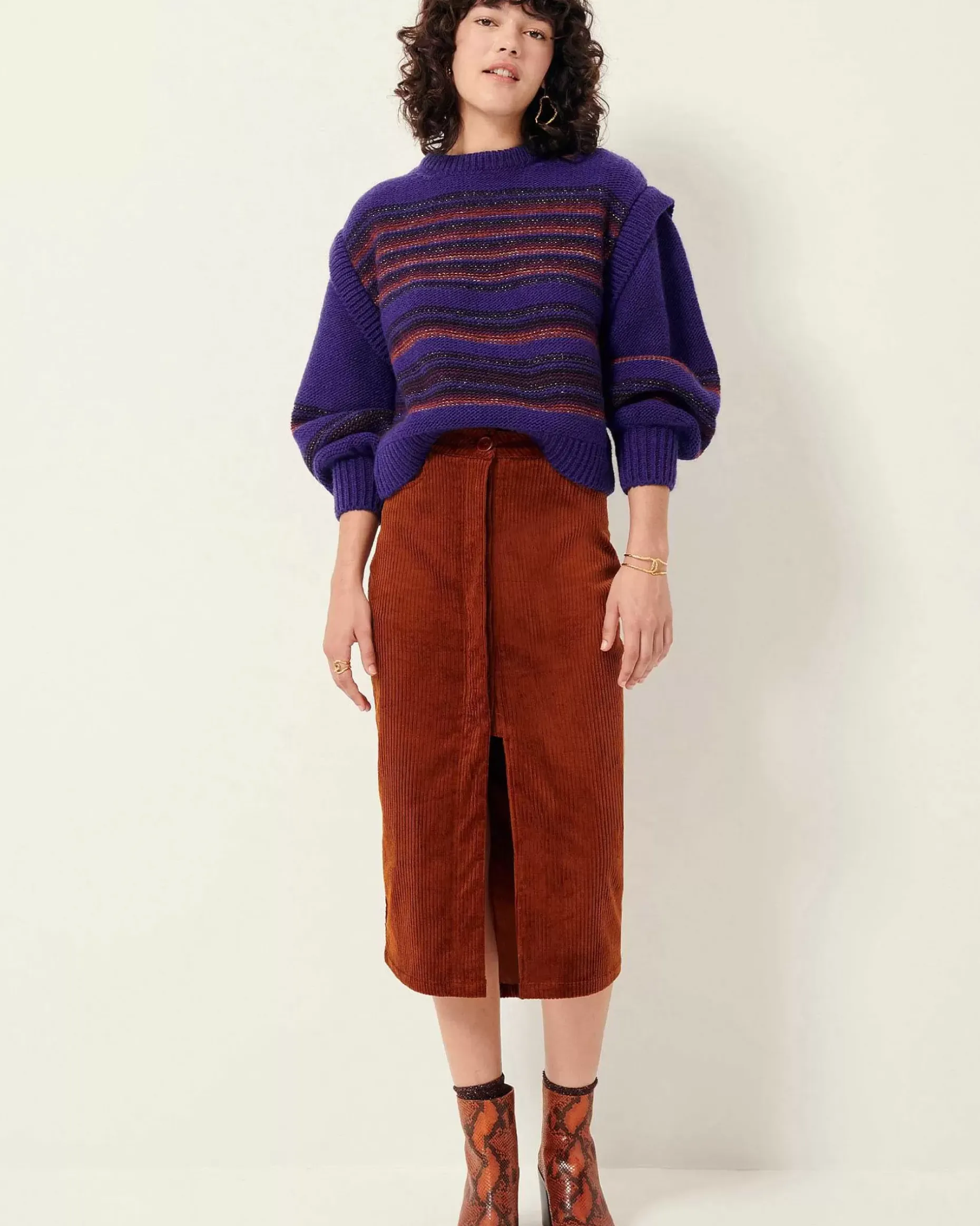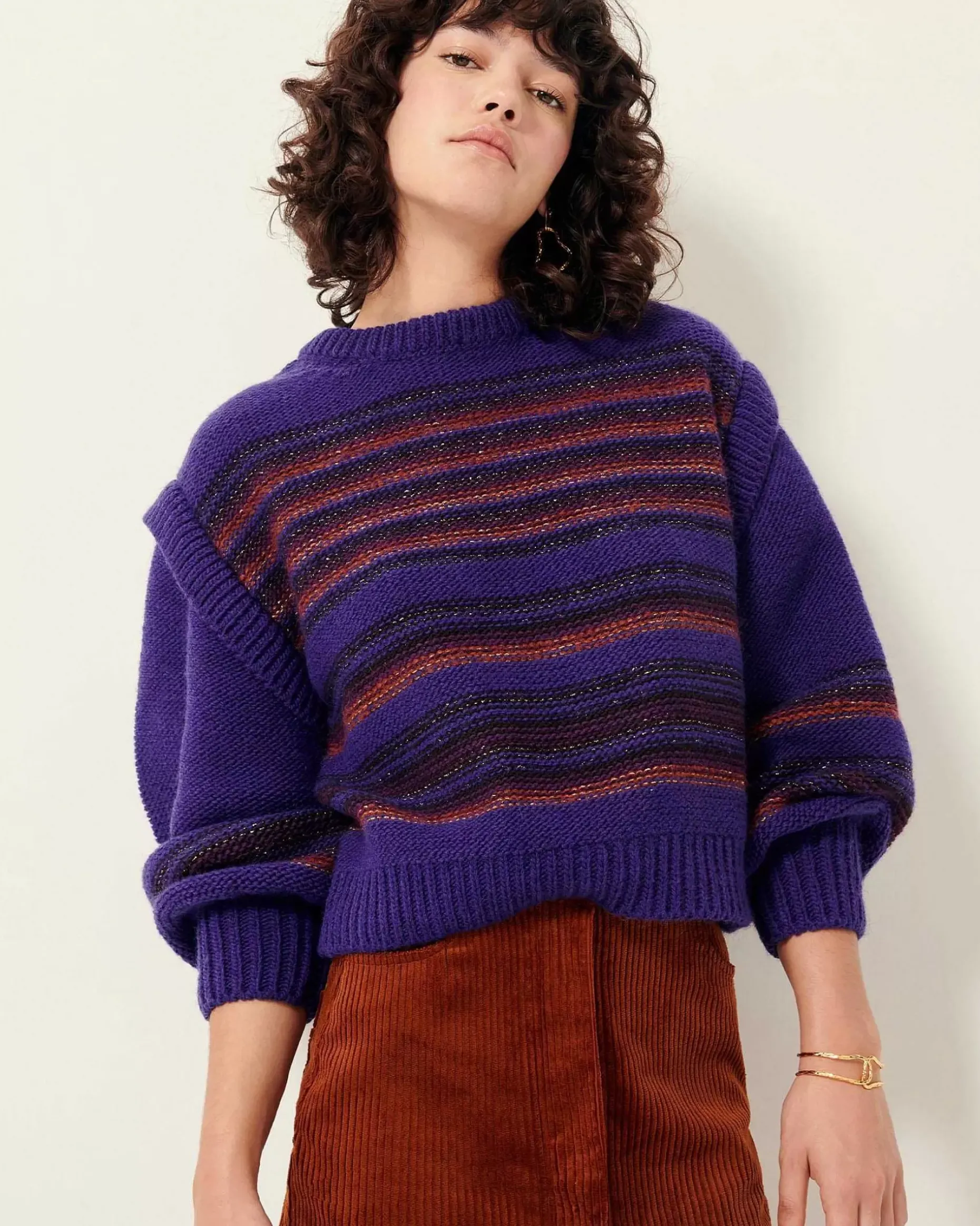 Pulli Mit Weiten Ballonärmeln Mit Trompe-L‘Oeil-Effekt Aus Flauschigem Strick Mit Verspielten Streifen, Italienische Strickarbeit.Dieses Produkt Besteht Aus Viskose, Die Aus Holz Aus Nachhaltig Betriebener Forstwirtschaft Gewonnen Wird.