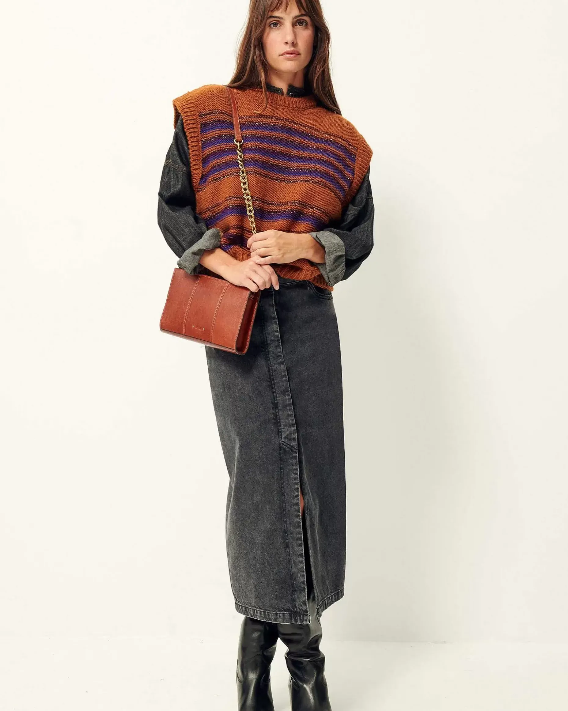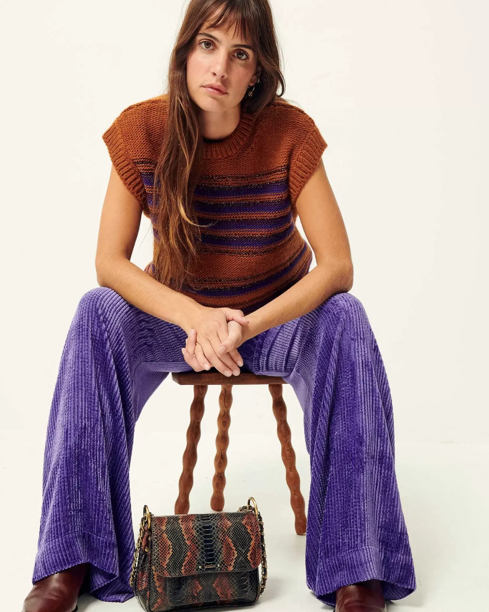 Ärmelloser Pulli Aus Flauschigem Strick Mit Verspielten Streifen, Italienische StrickarbeitDieses Produkt Besteht Aus Viskose, Die Aus Holz Aus Nachhaltig Betriebener Forstwirtschaft Gewonnen Wird.