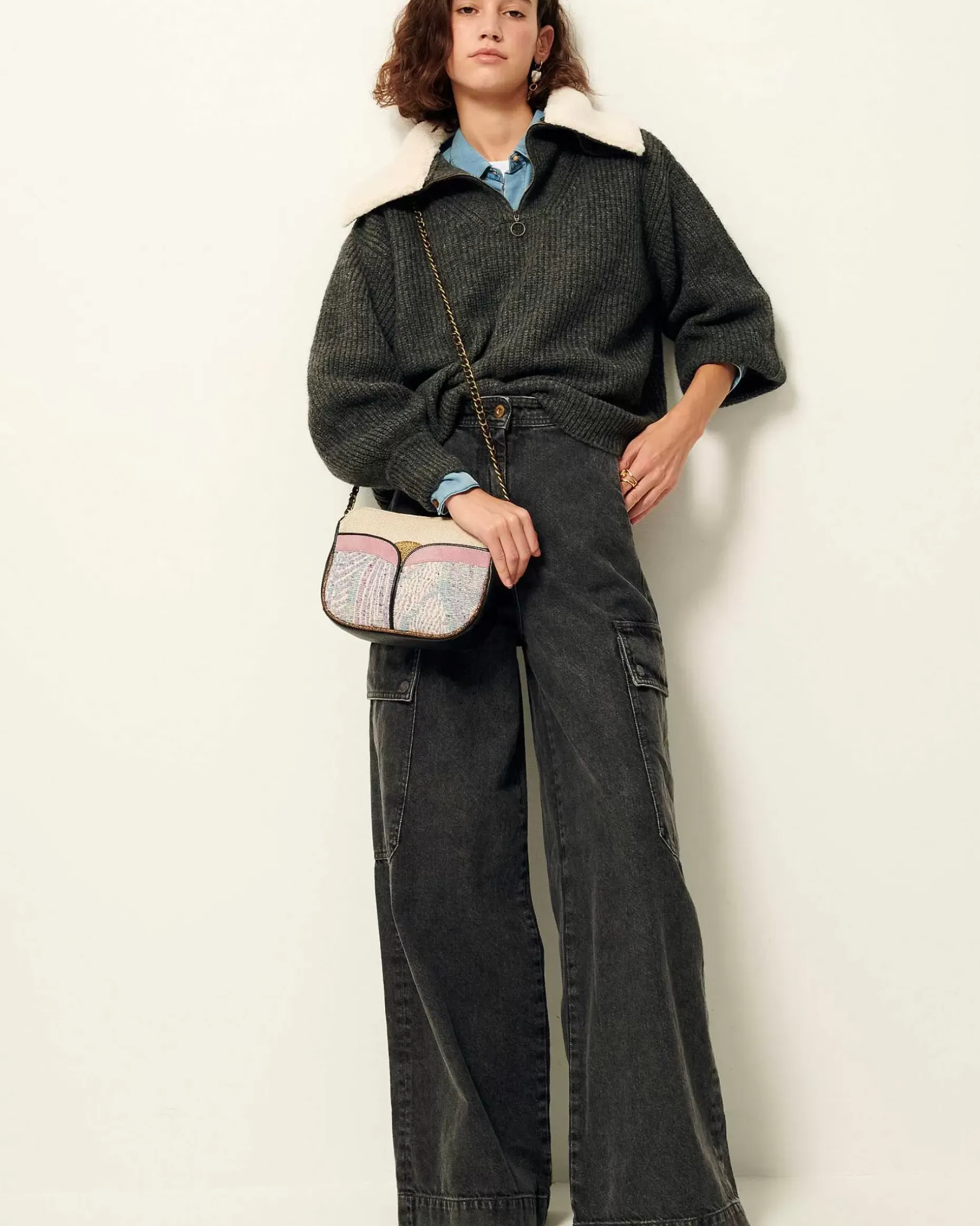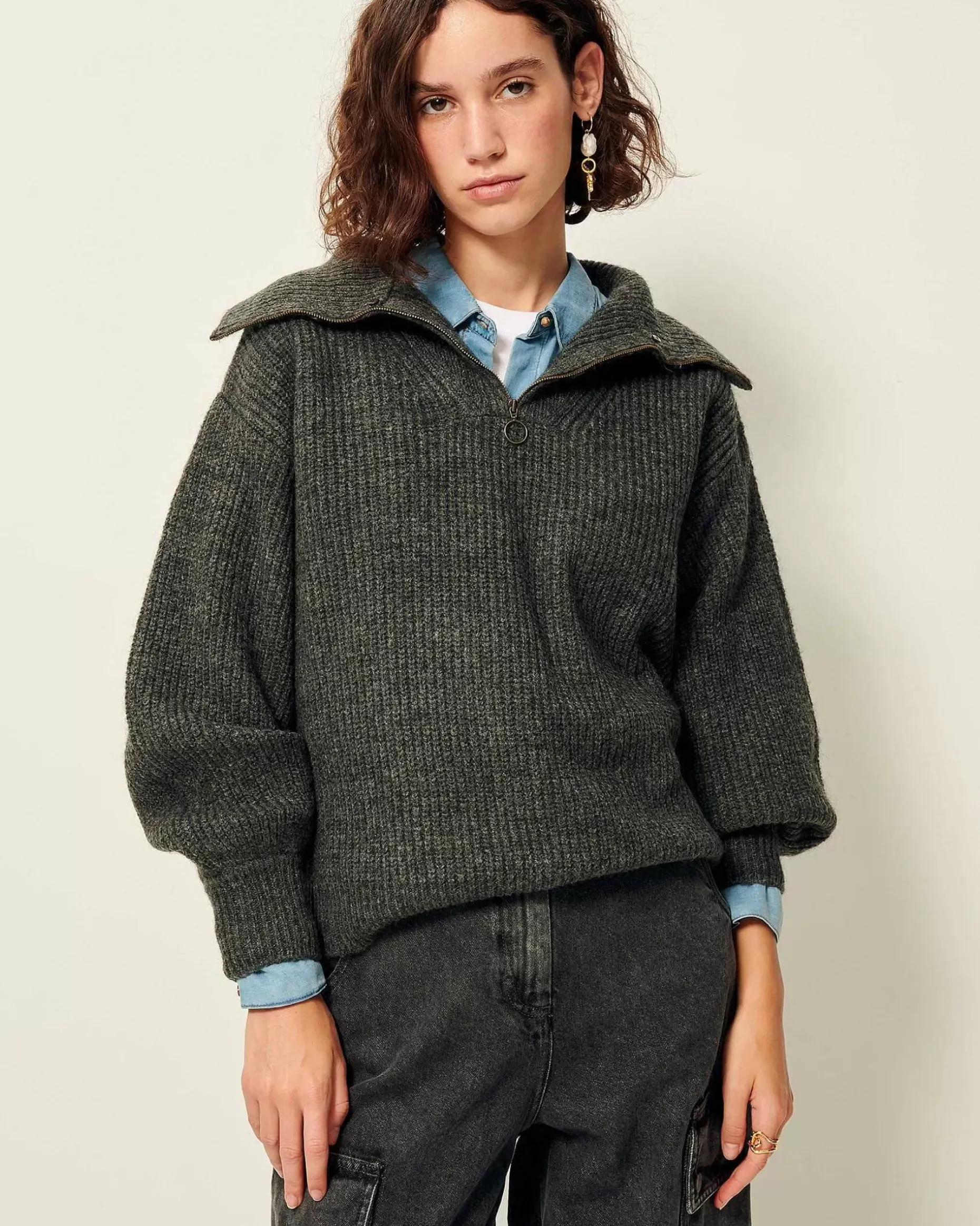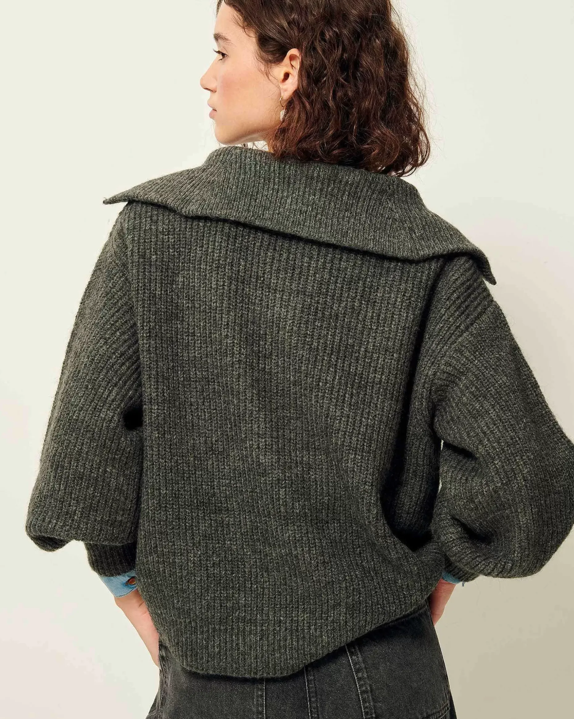 Pulli Mit Troyerkragen Aus Flauschigem, Perlenbesetztem Rippstrick.