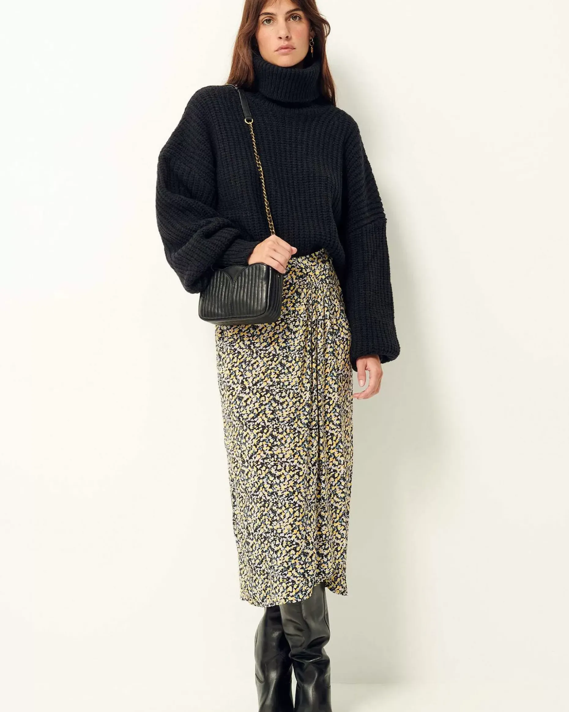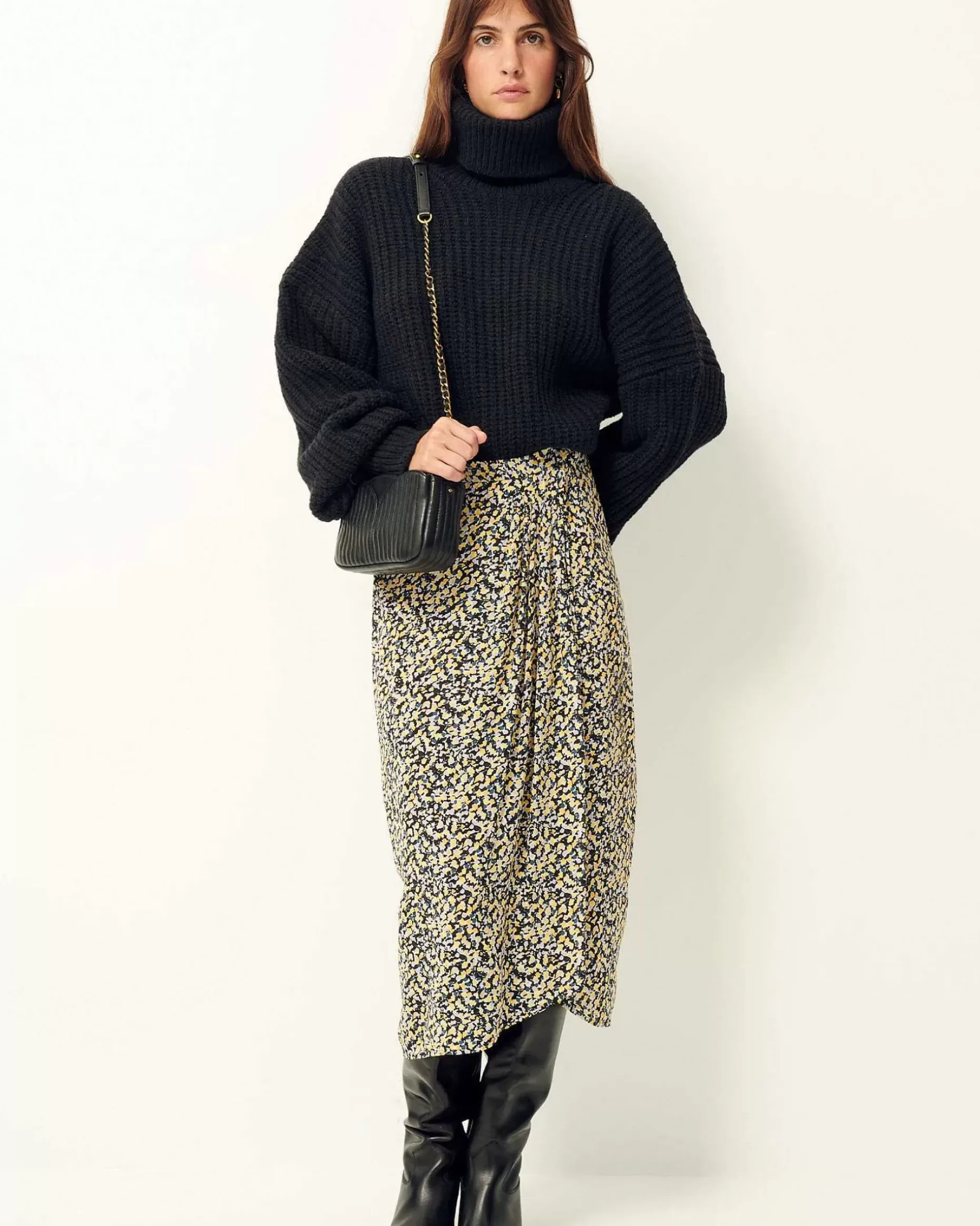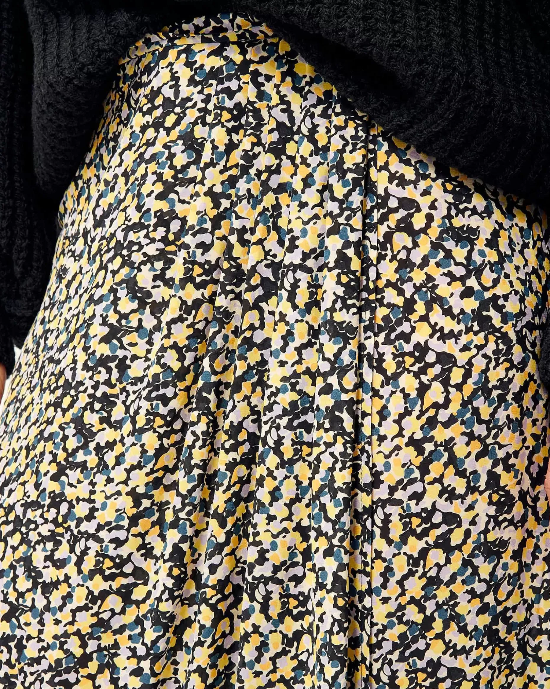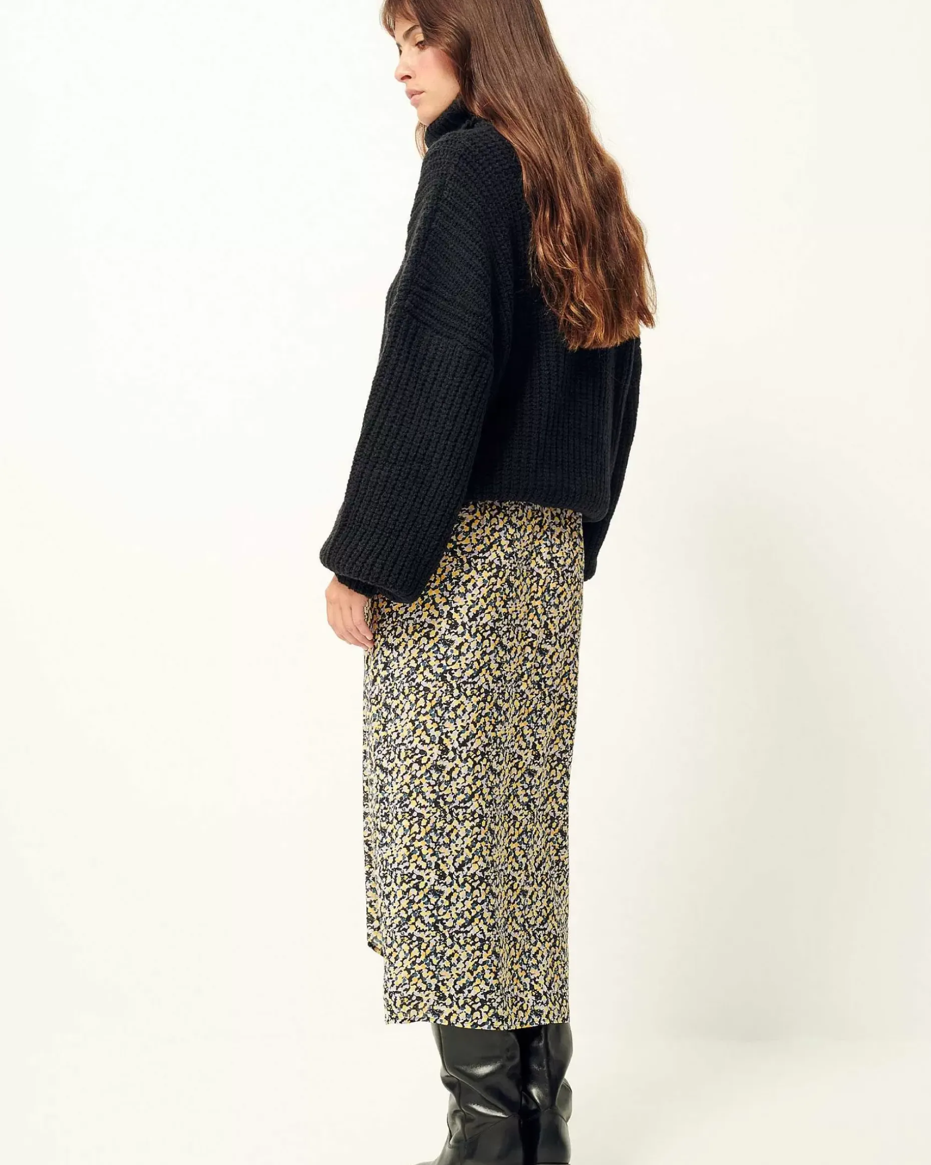 Halblanger Wickelrock Aus Gemustertem, Weich Fließendem Viskosesatin, Exklusives Sessùn-Muster.
