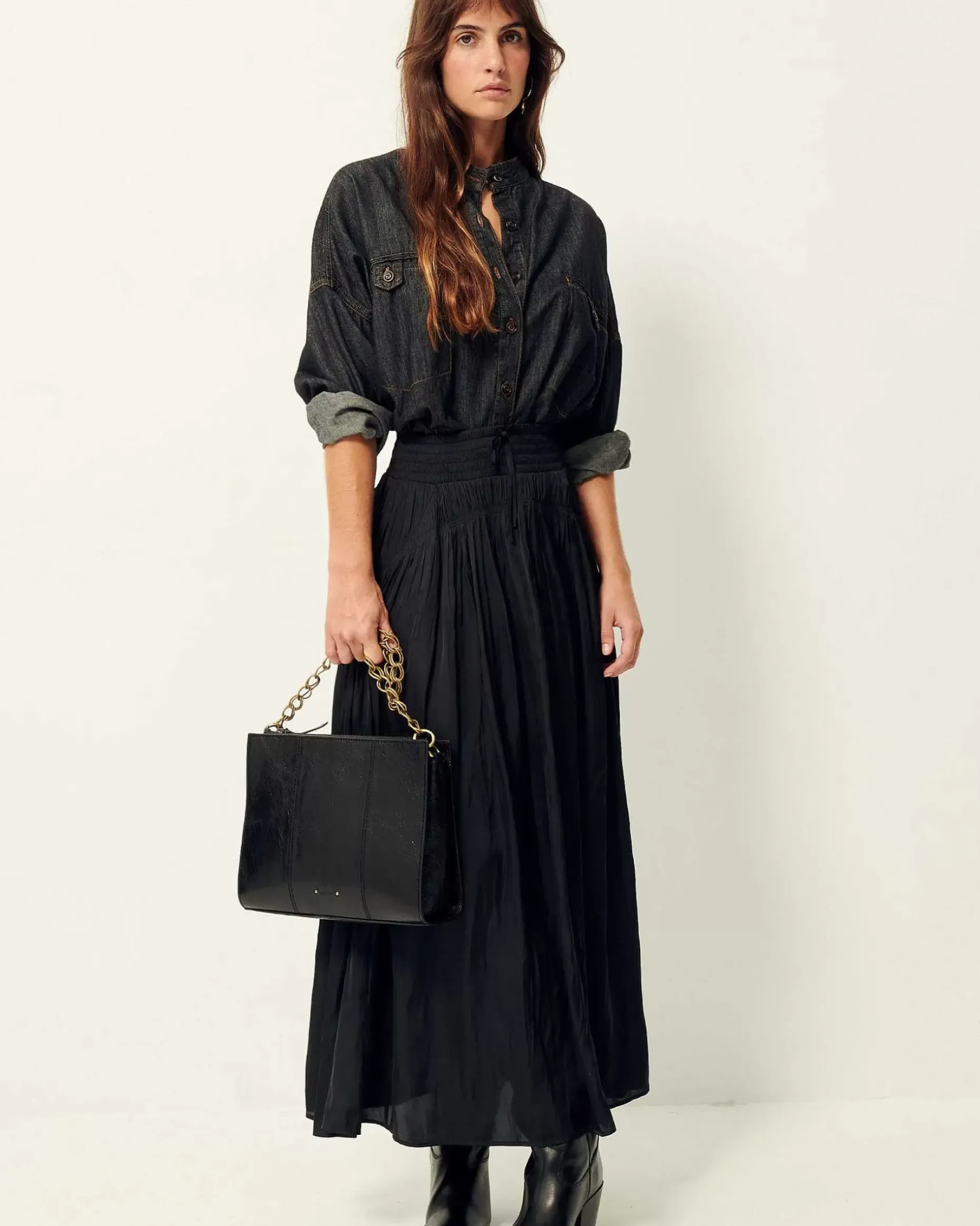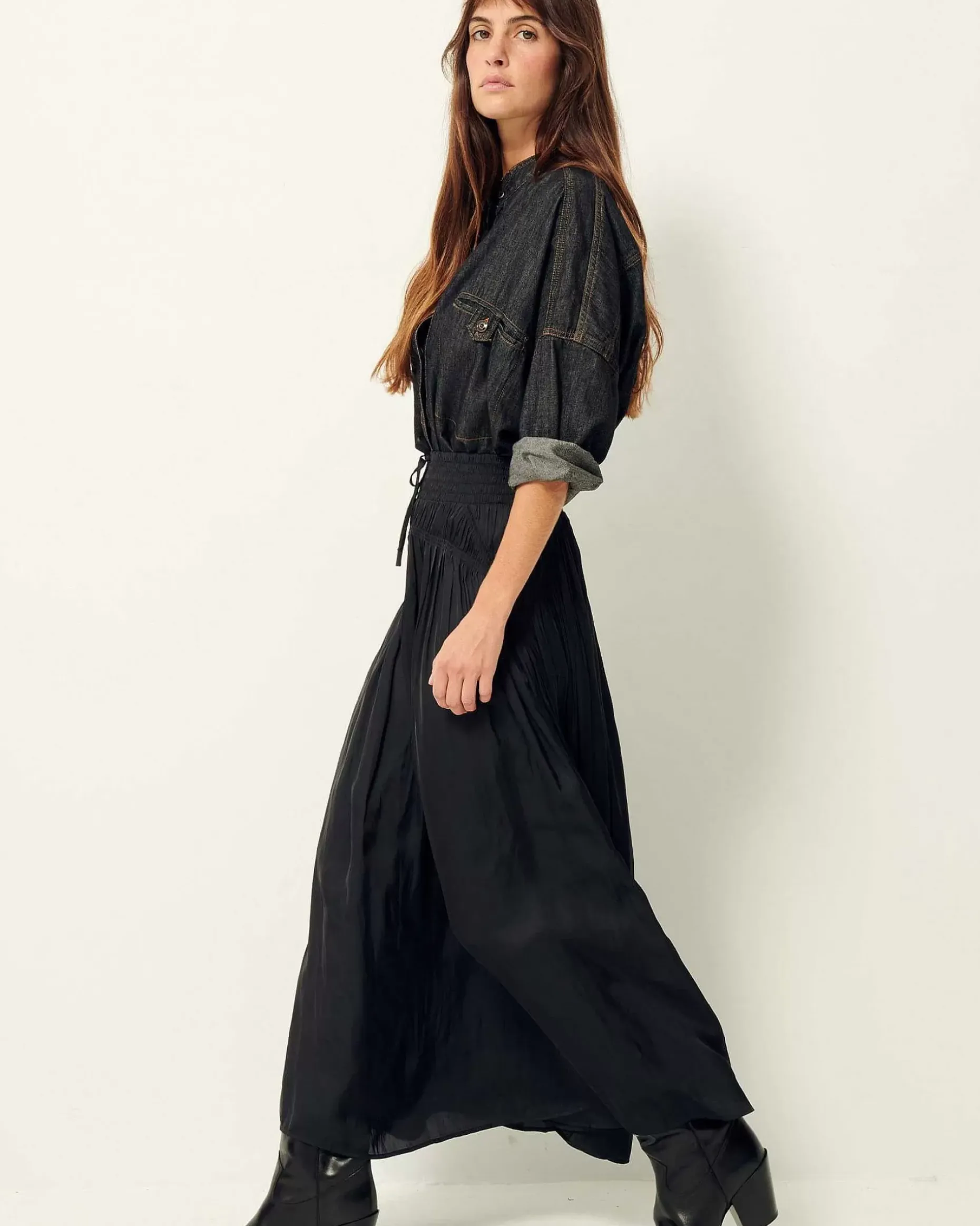 Langer Unterrock Mit Gummizug Und Gerafften Teilungsnähten In Der Taille Aus Fließendem Und Luftigem Satin Mit Leicht Gekreppter Struktur.