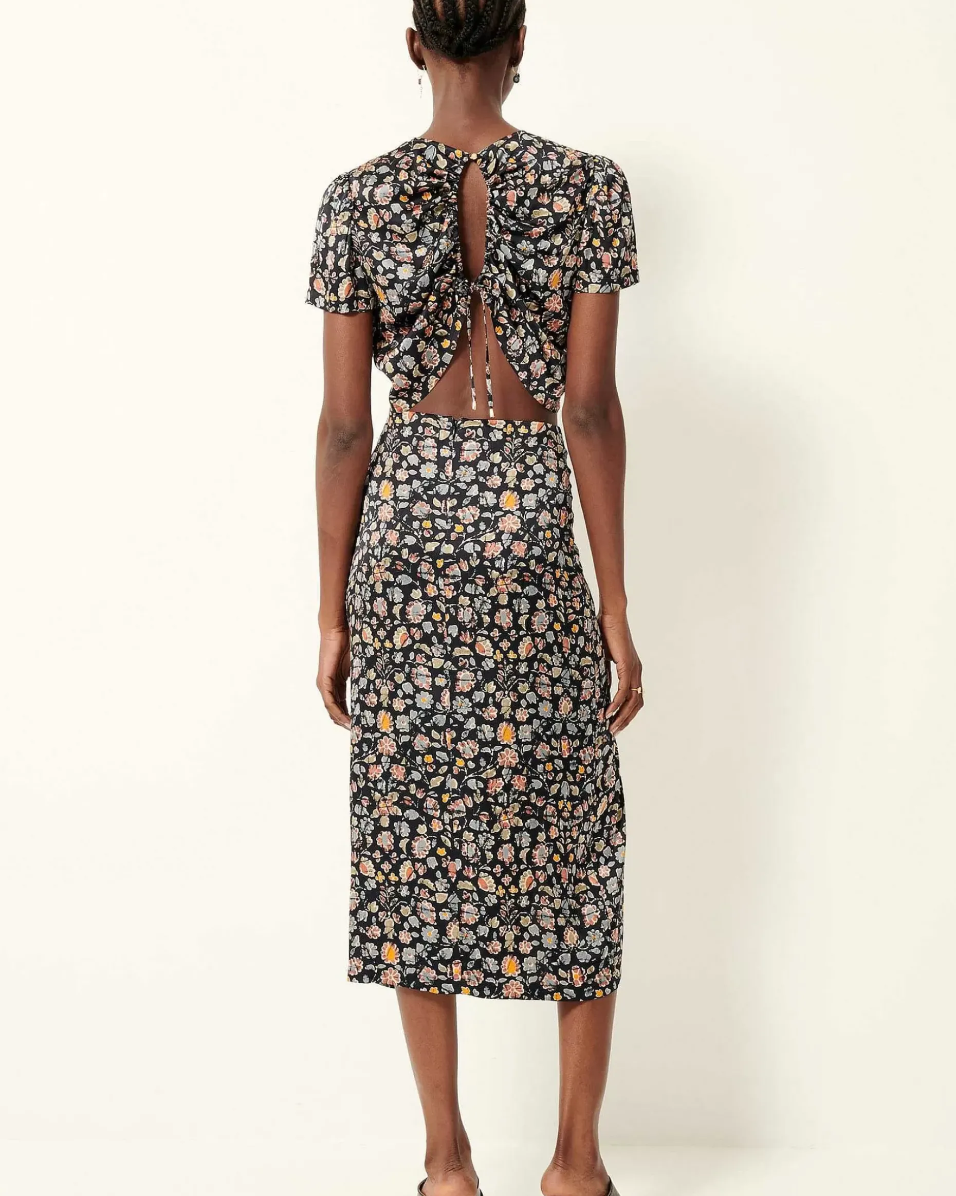 Halblanger, Geraffter Rock Aus Fließendem Viskose-Satin.