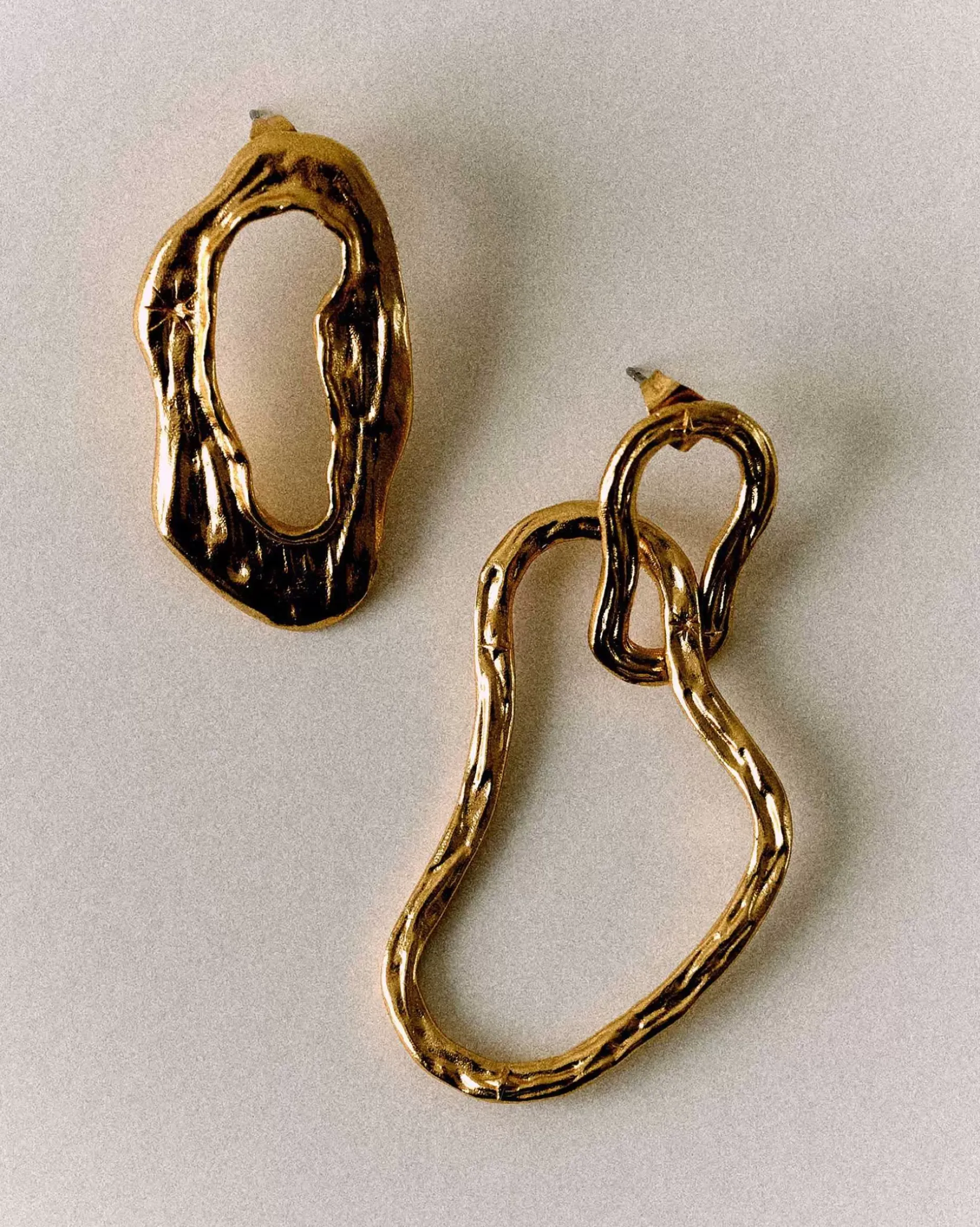Zwei Ungleiche Ohrringe Bestehend Aus Unregelmäßig Geformten Ringelementen.