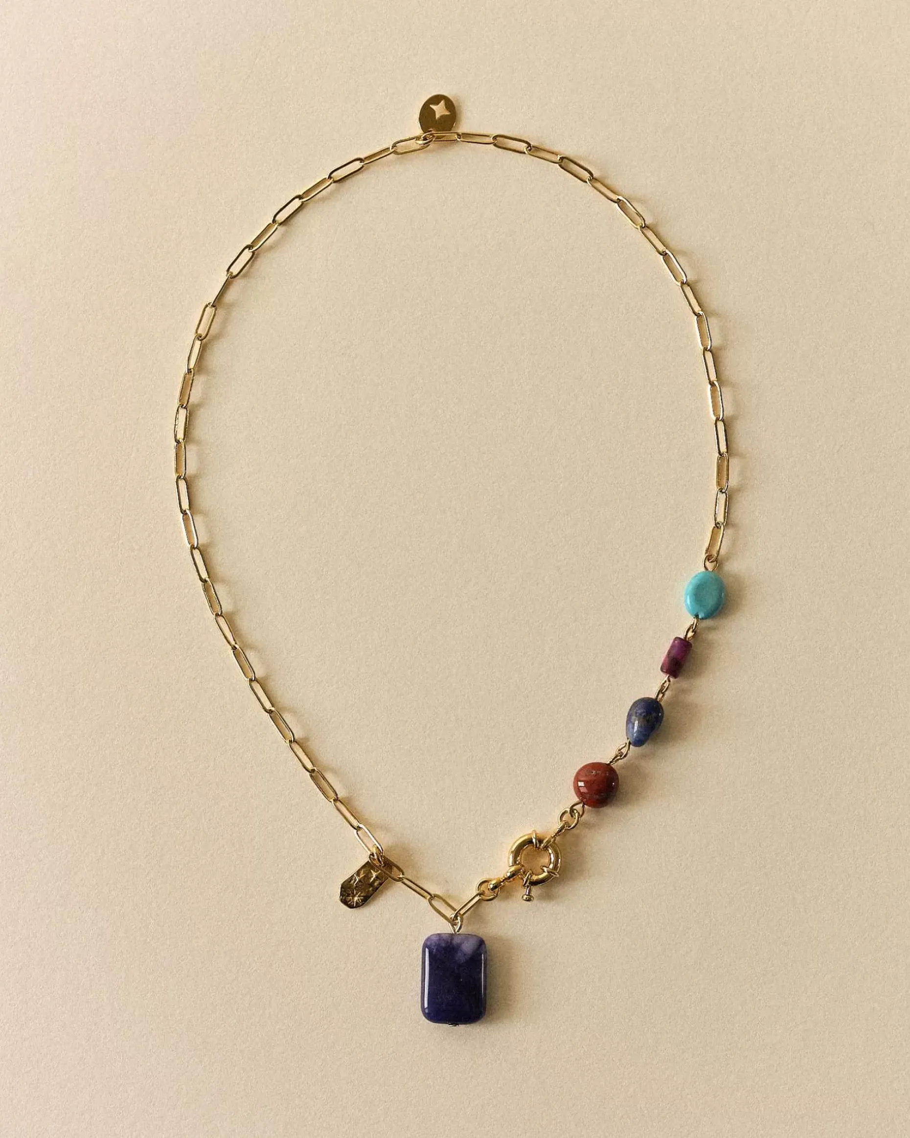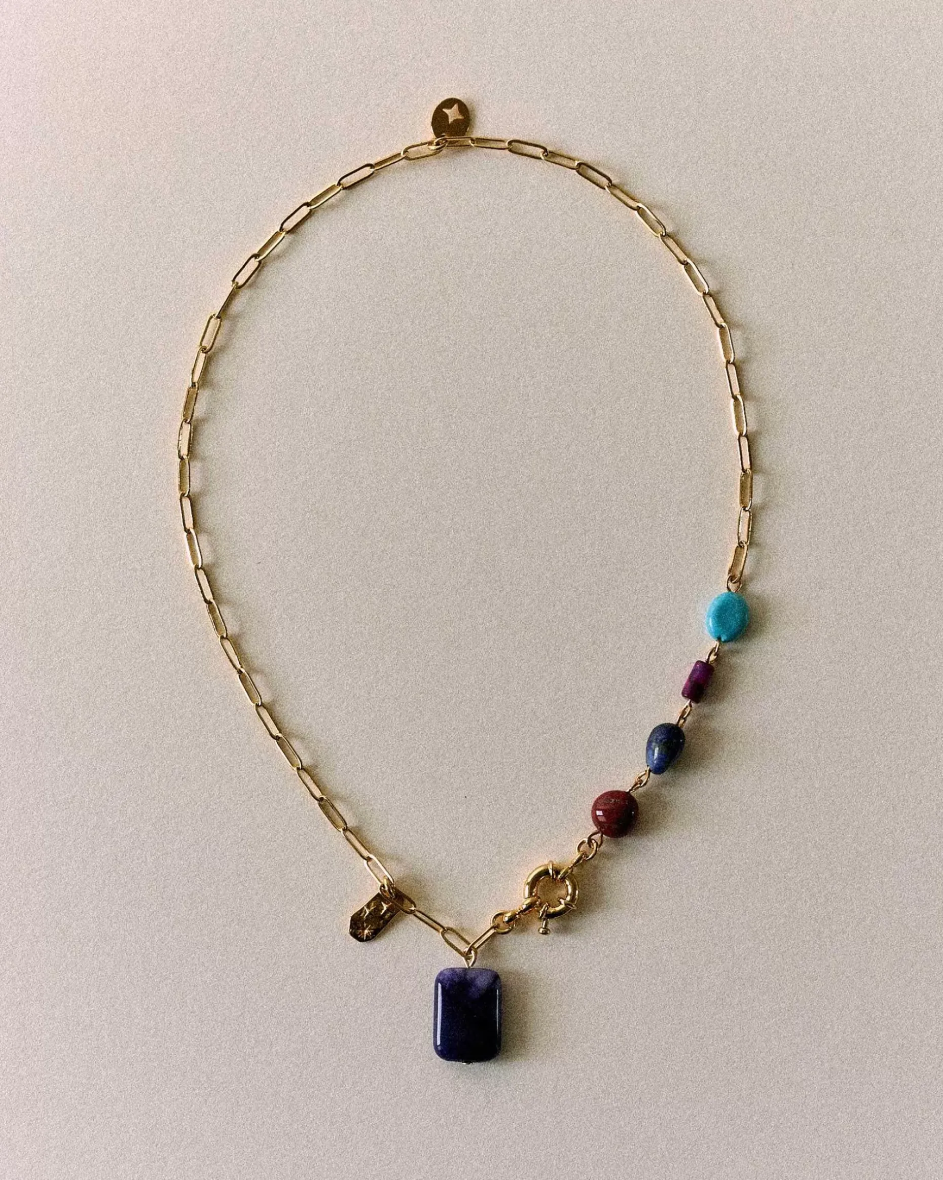 Feingliedrige Halskette Mit Natursteinen, Quaste Und Verspieltem Ringverschluss.