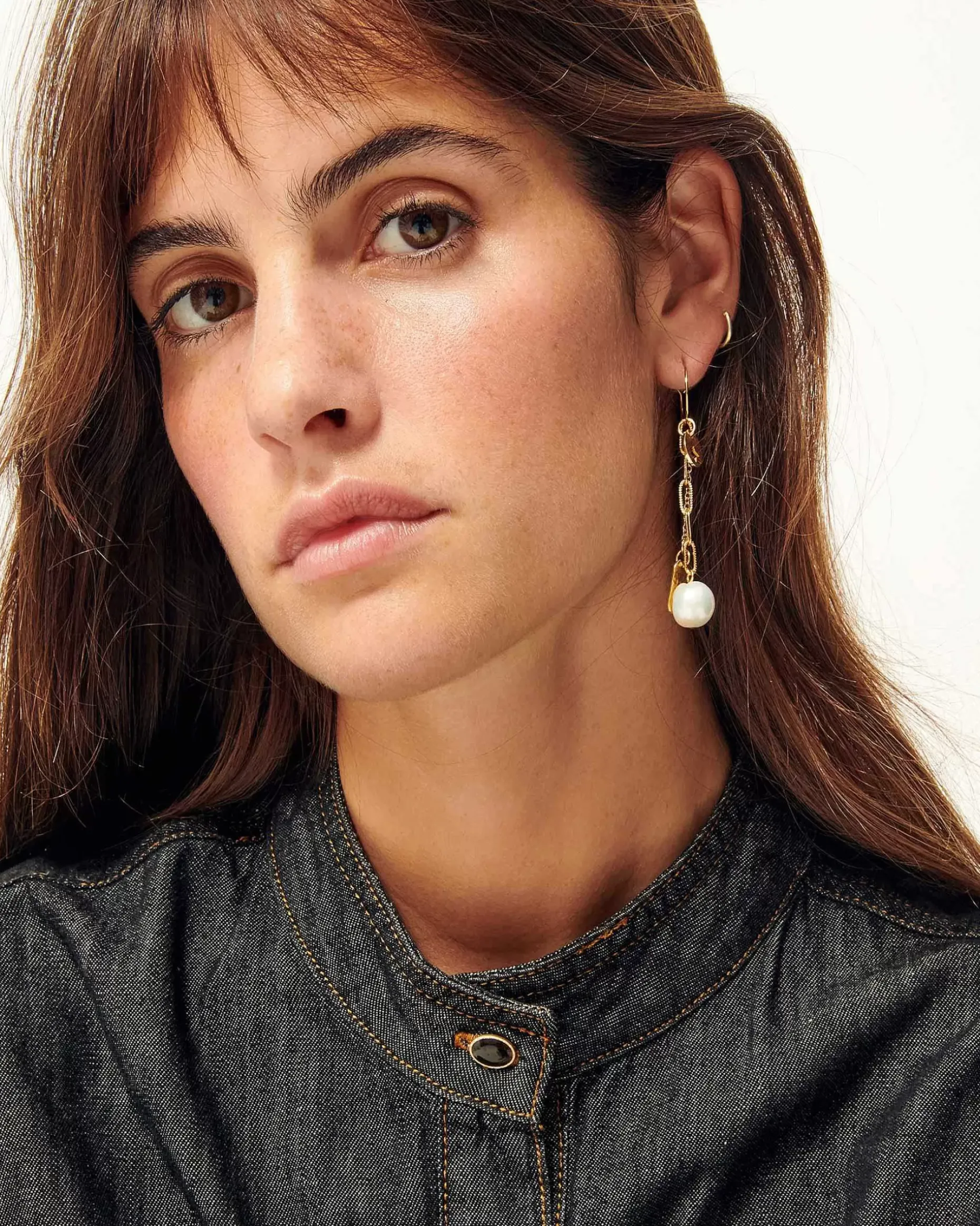 Zarte Mono-Creole Mit Kettchen, Perlmuttfarbener Süßwasserperle Und Anhängern.
