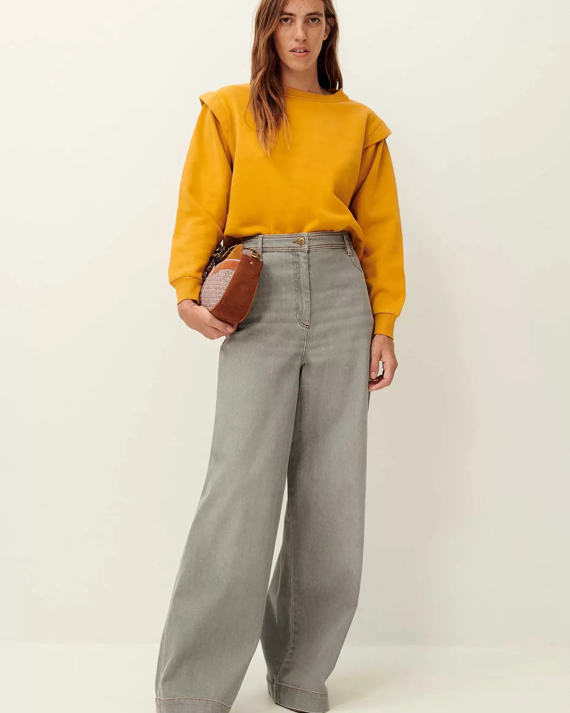 Sweatshirt Mit Ballonärmeln Und Flügeleinsätzen An Den Armausschnitten Aus Innen Angerautem Molton, In Portugal Angefertigt.
