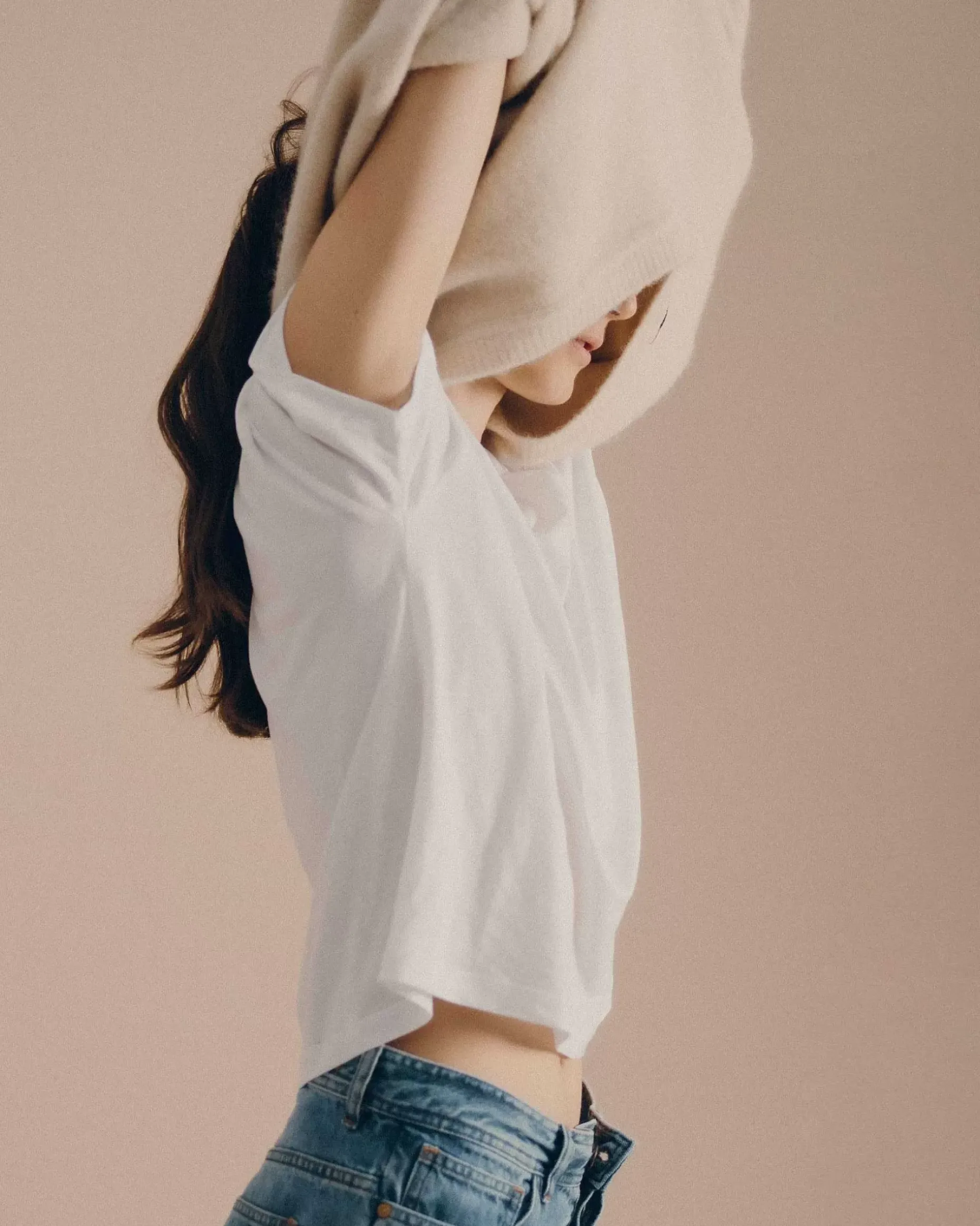 V-Ausschnitt-Ärmelloser T-Shirt Aus Fließendem Jersey, In Portugal Angefertigt.
