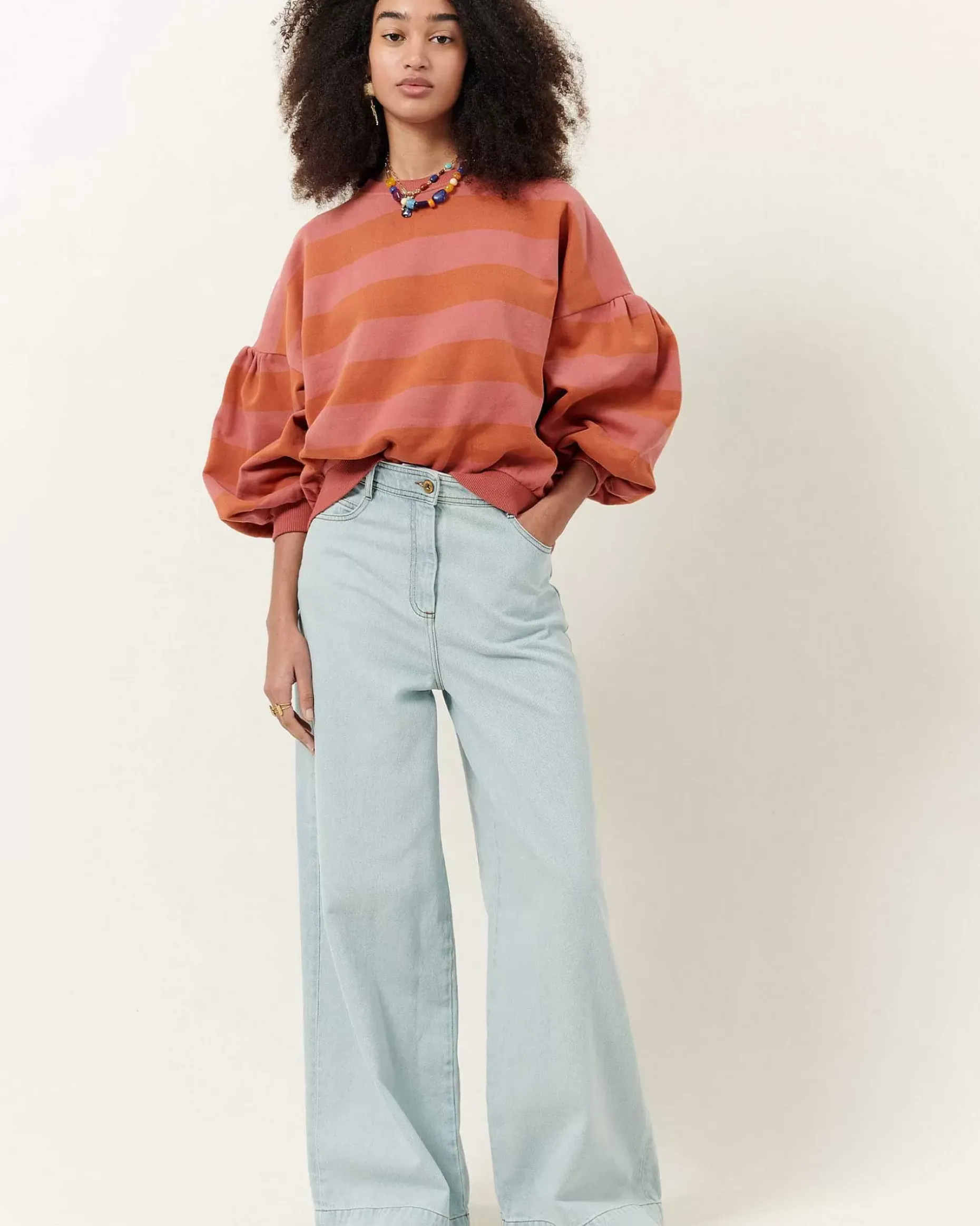 Sweatshirt Mit Ballonärmeln Aus Gestreiftem Molton, In Portugal Angefertigt.