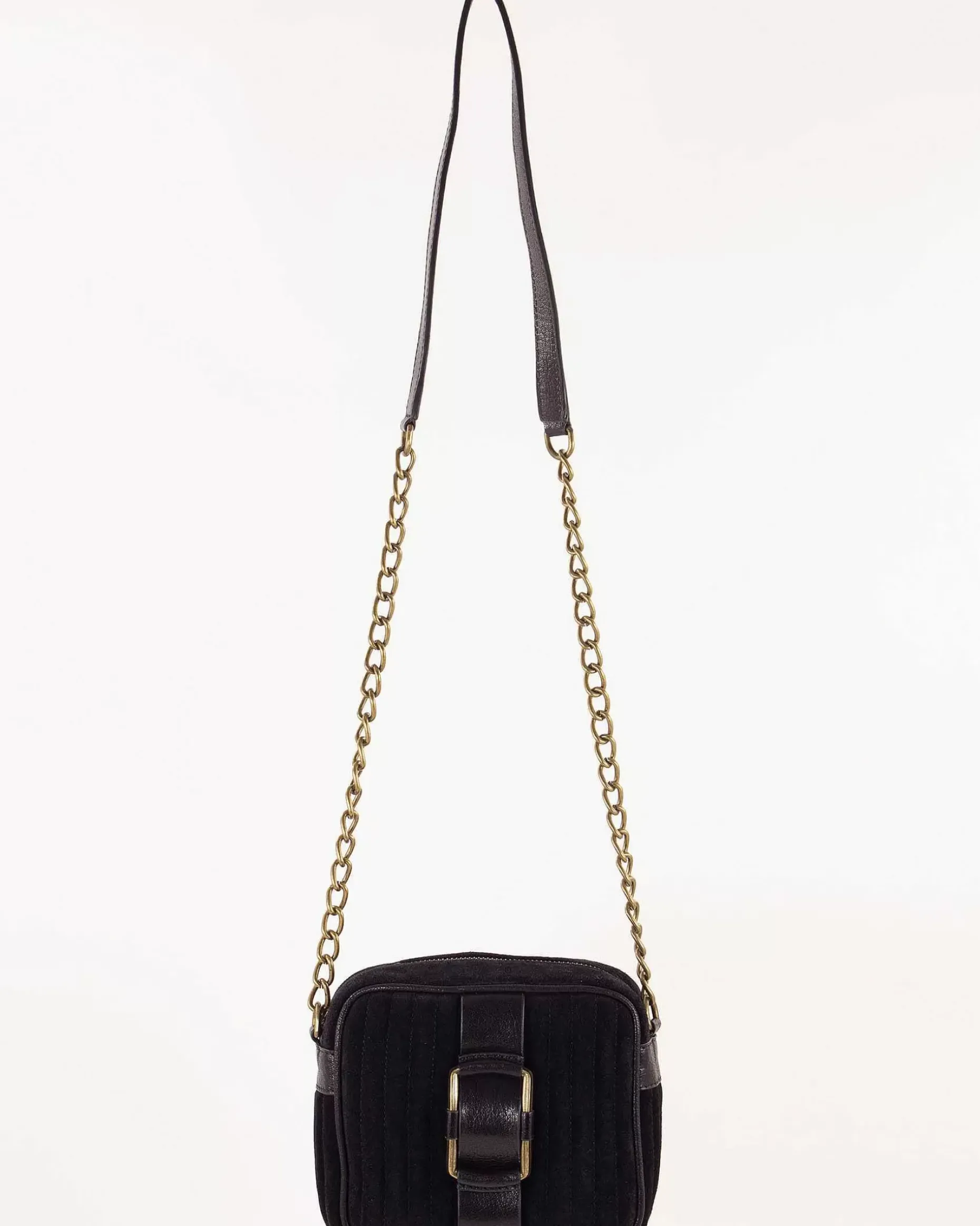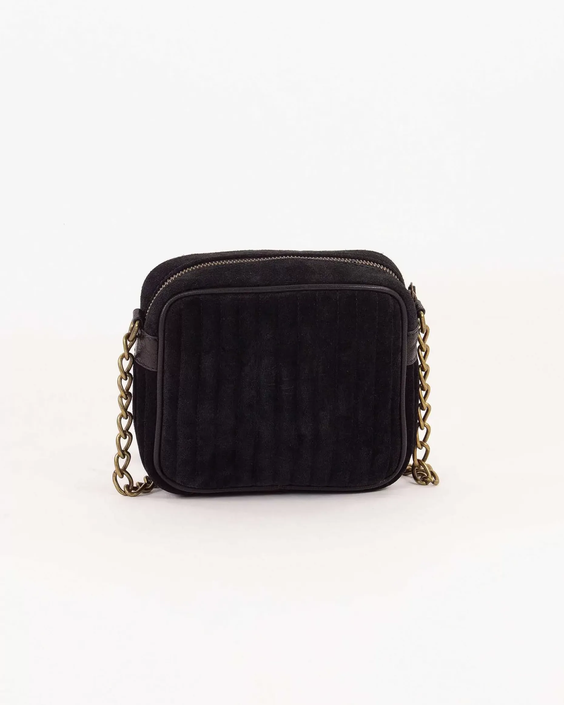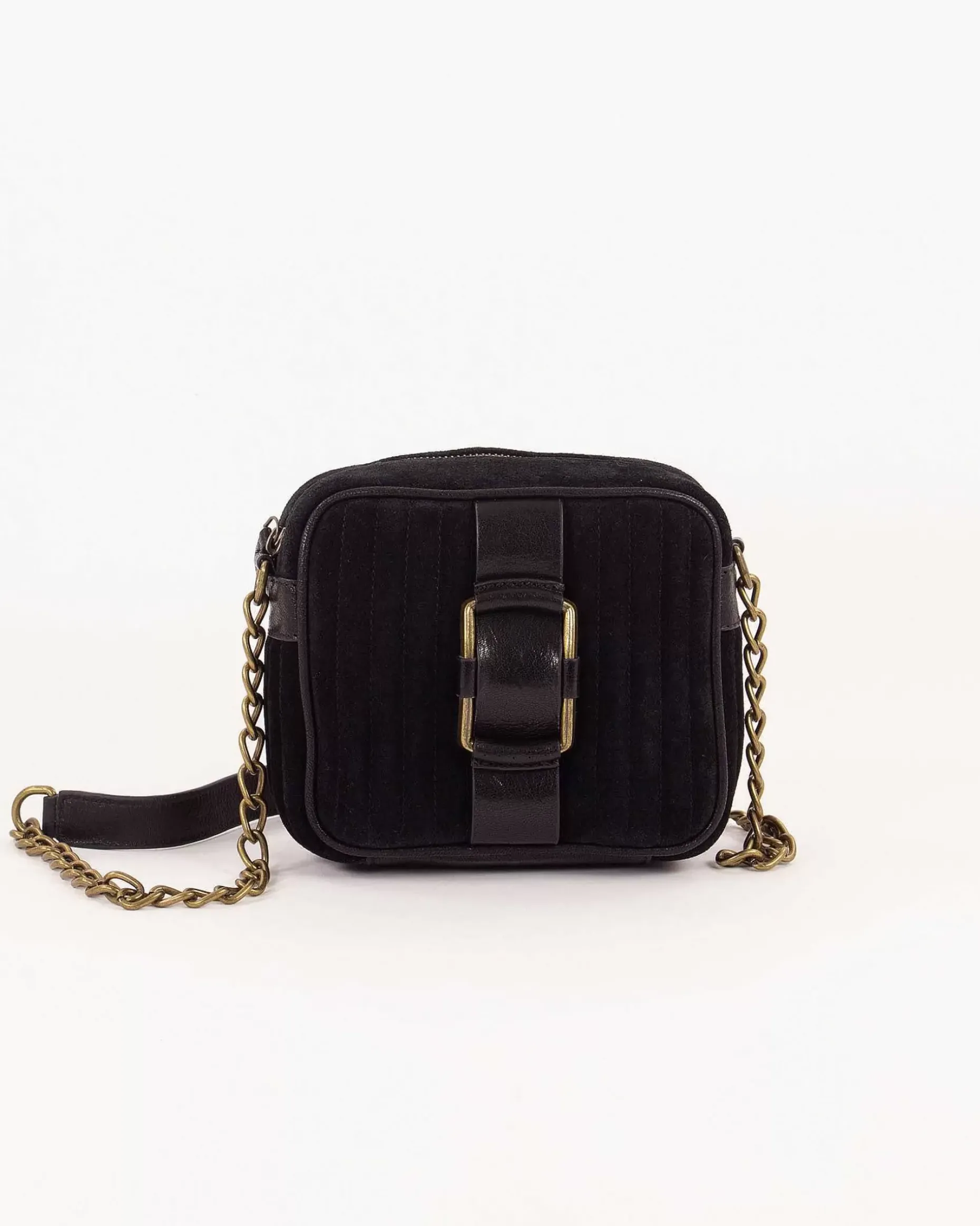 Tasche Aus Abgestepptem Spaltleder Mit Elementen Aus Ziegenleder.