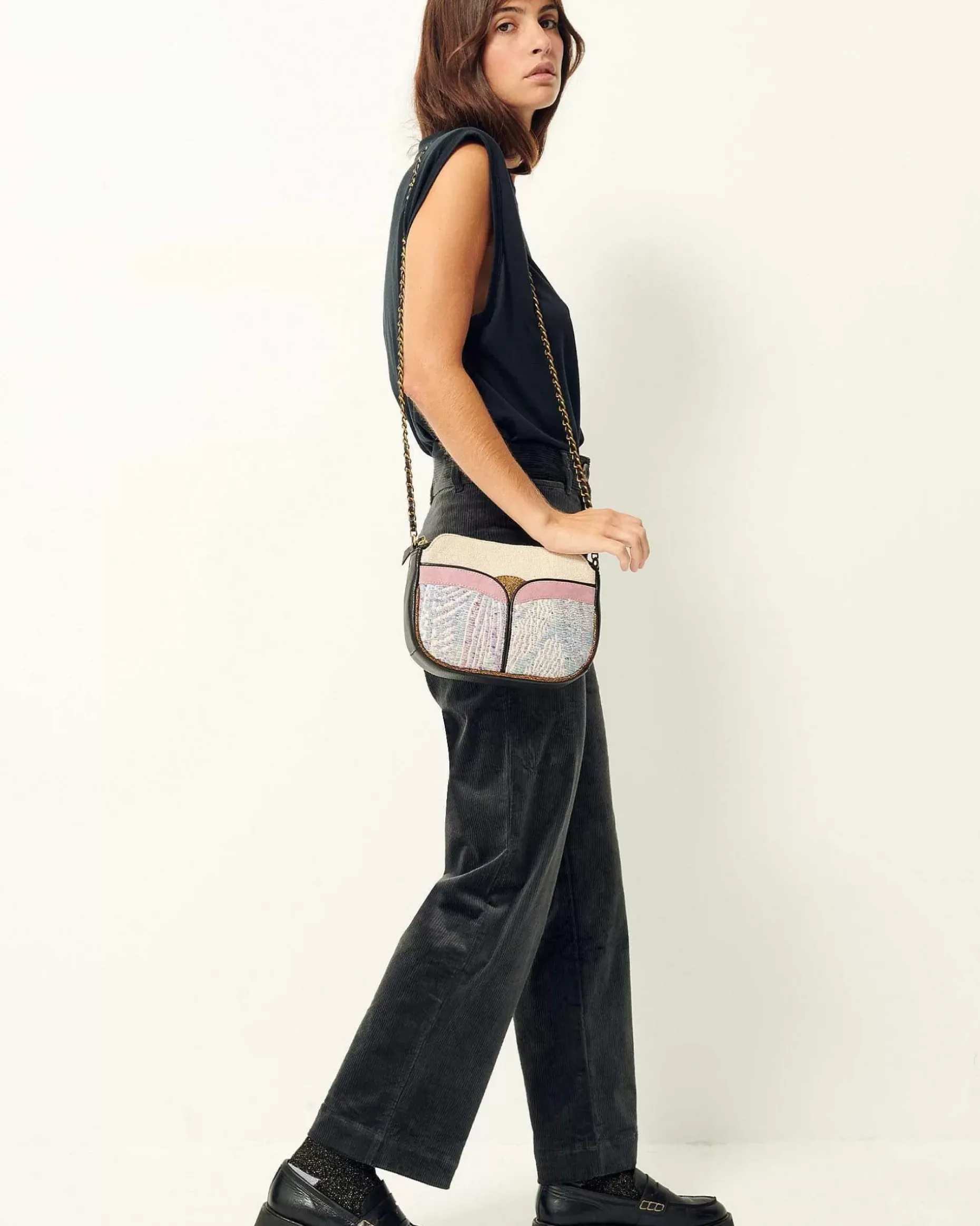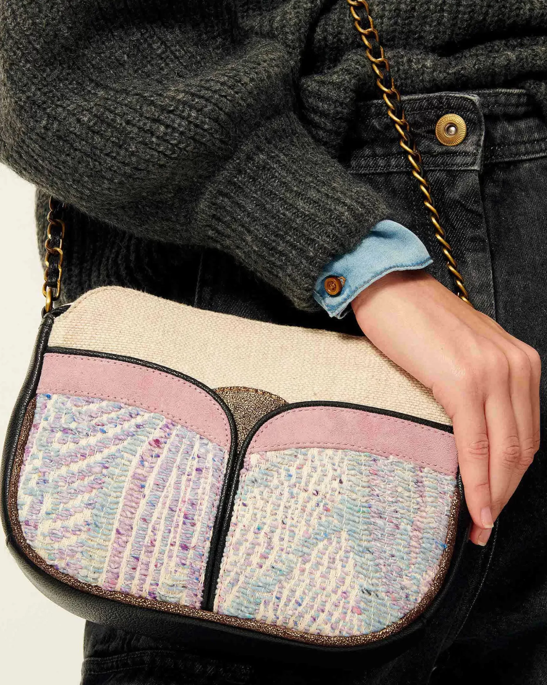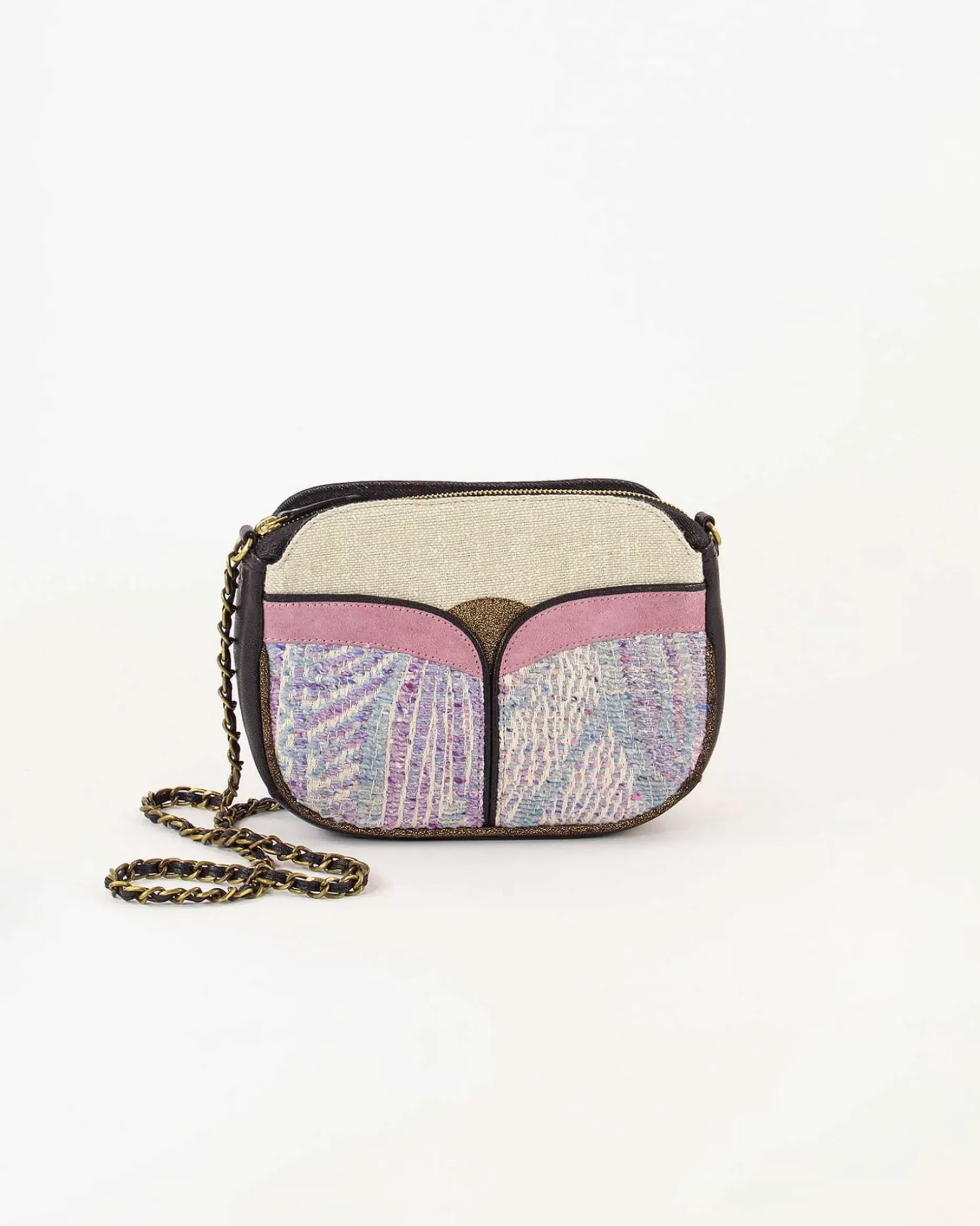 Handtasche Aus Ziegenleder Mit Fantasievoll Gestalteten Textileinsätzen.
